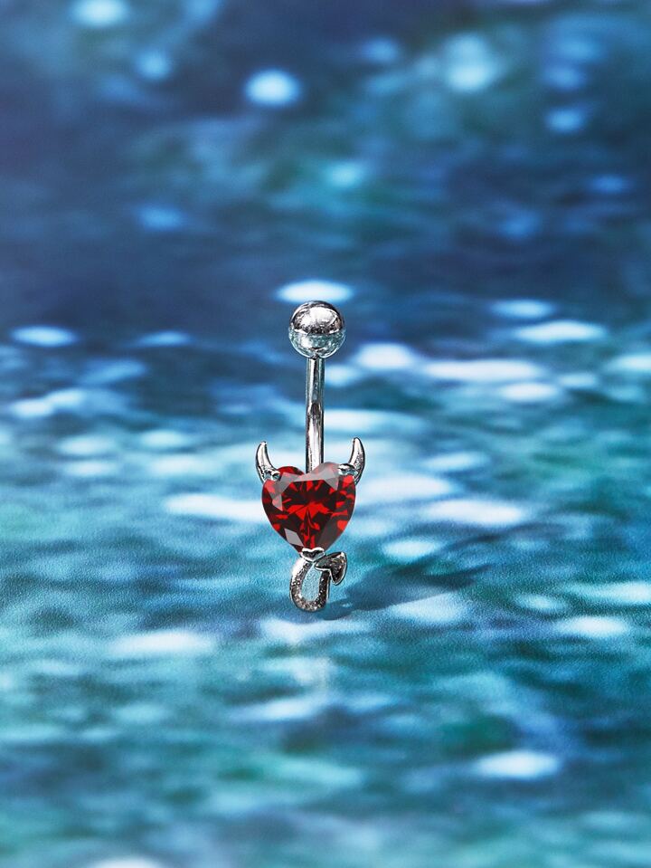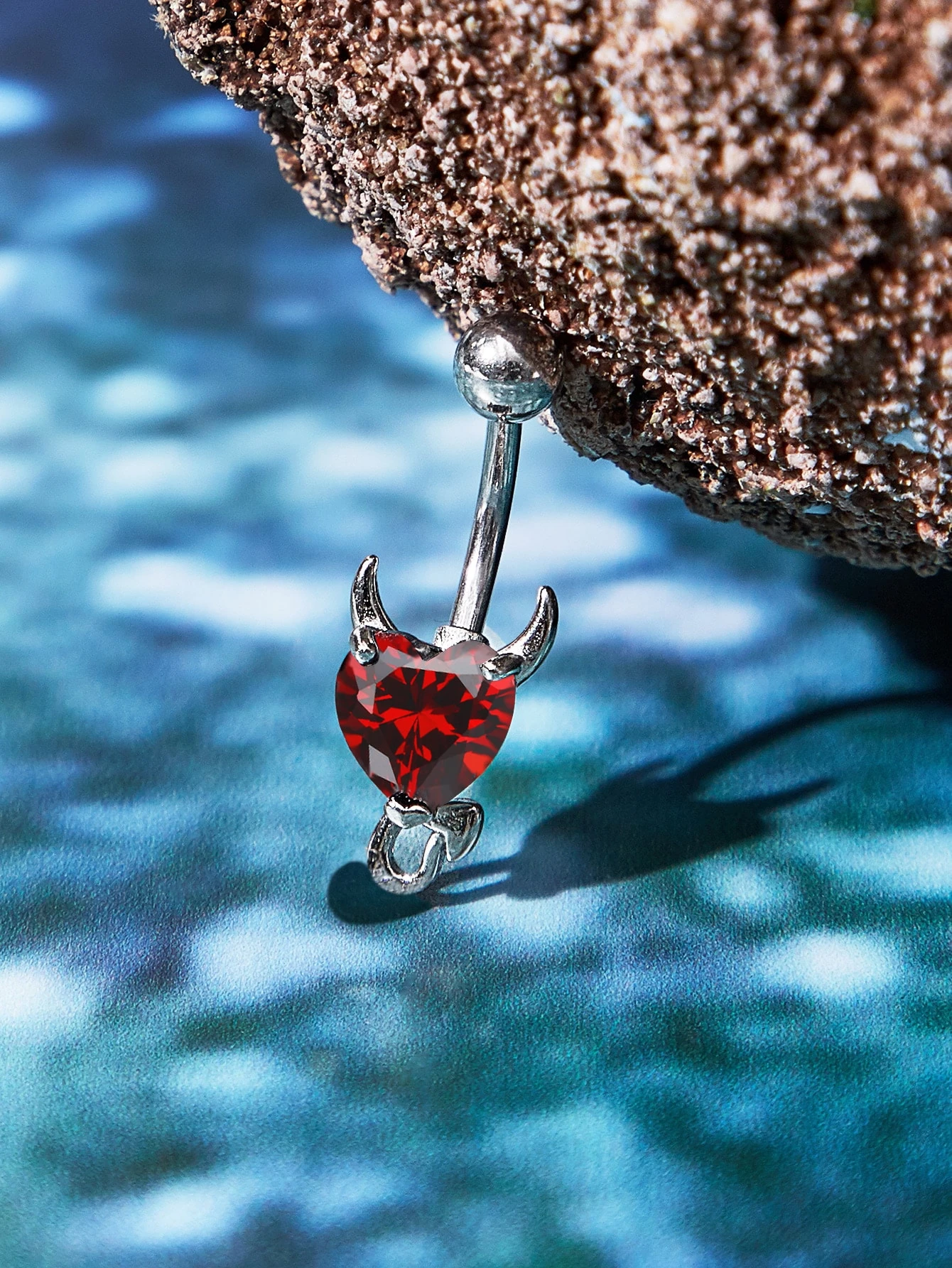 Goth Anillo de vientre zirconia cúbica con adorno de corazón