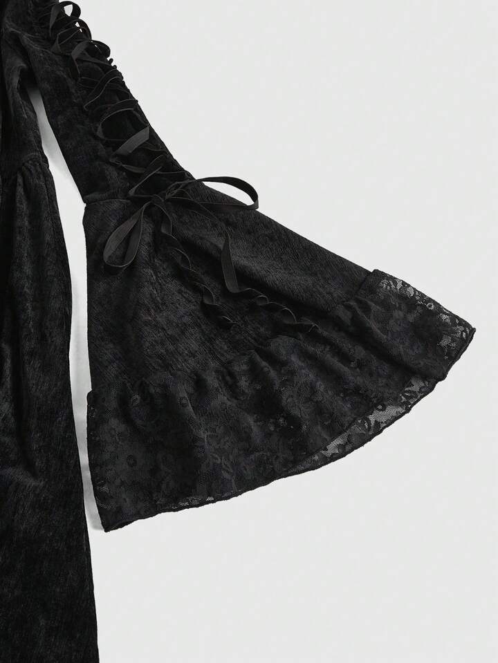 Goth Vestido corto con mangas acampanadas de encaje oscuro para mujeres, para Año Nuevo