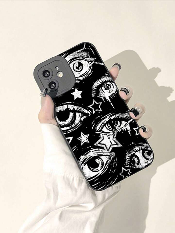 Goth Funda de teléfono de silicona negra pintada con art star y lágrima con diseño Y2K de alta gama, compatible con las series iPhone 12, 13 y 14