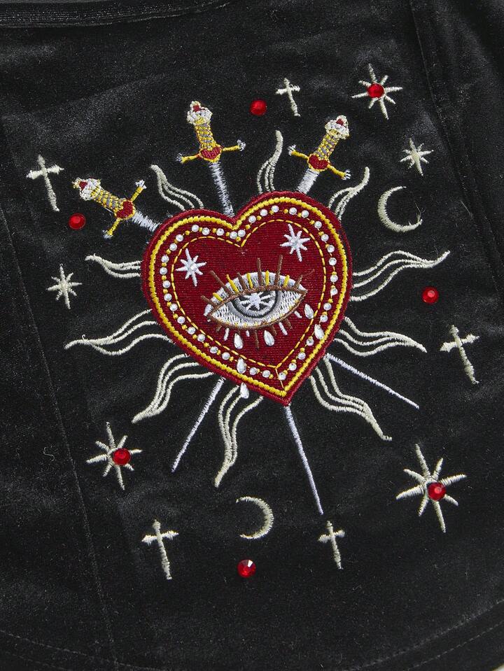 Goth Elegante camiseta de talla grande con mangas cortas y abullonadas, cintura ajustada, y decoraciones de cristal de rubí, bordado de lágrima, gemas de ojo de sol y decoraciones de sol y estrella, en estilo vintage de palacio