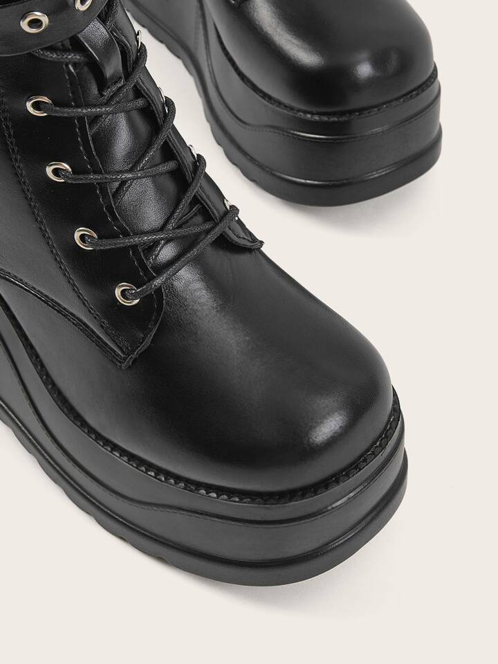 Goth Botas de cuña con cordones y diseño de ojalillos y murciélagos para el otoño