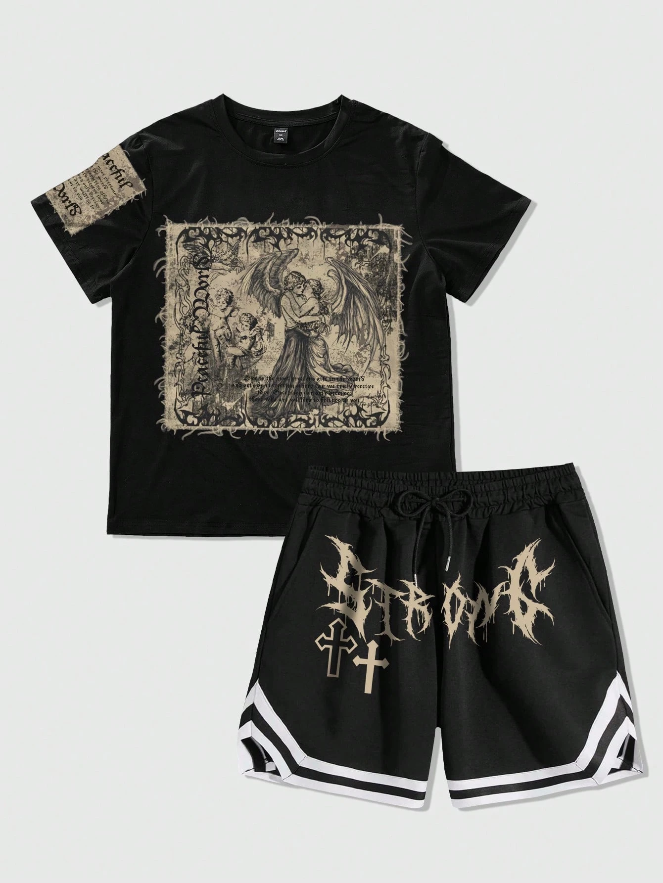 Goth Conjunto informal de 2 piezas para hombre de marca de moda: Camiseta y pantalones cortos