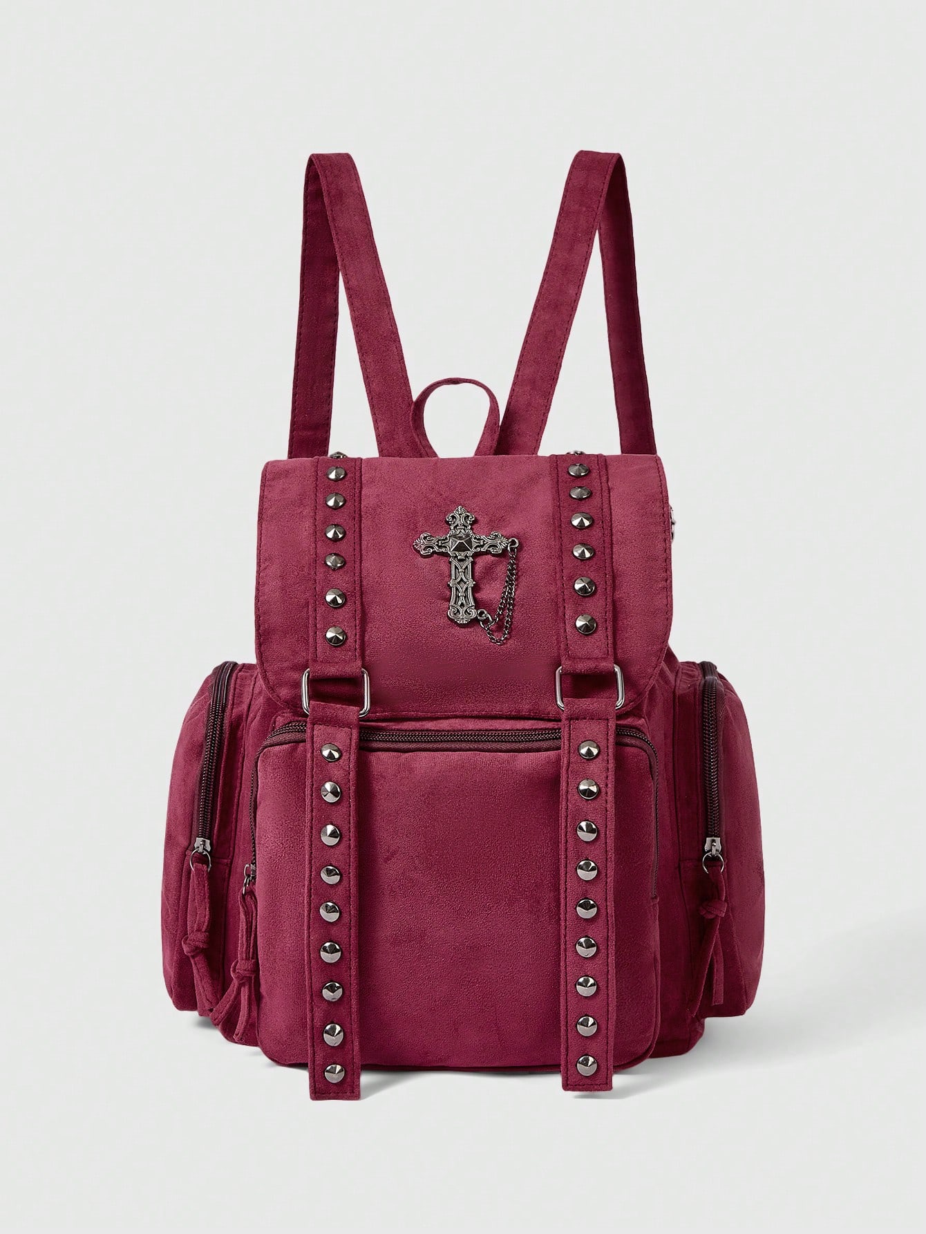 Goth Mochila de estilo punk con remaches de cuero sintético de moda