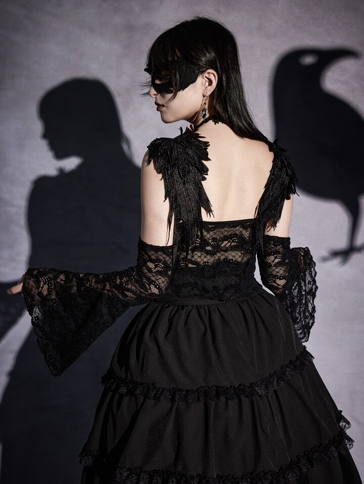 Top con encaje floral con cordón delantero de hombros descubiertos