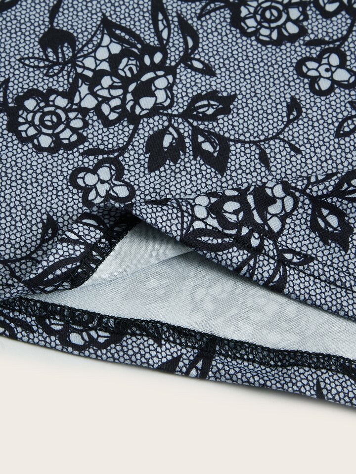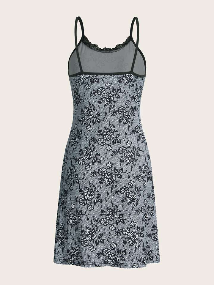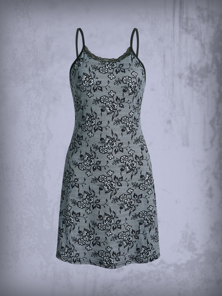 Goth Vestido de tirantes con estampado floral con encaje en contraste