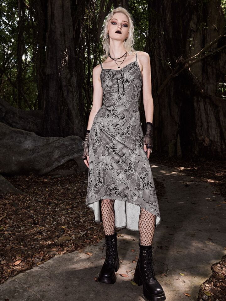 Goth Vestido de tirantes con estampado floral con nudo irregular