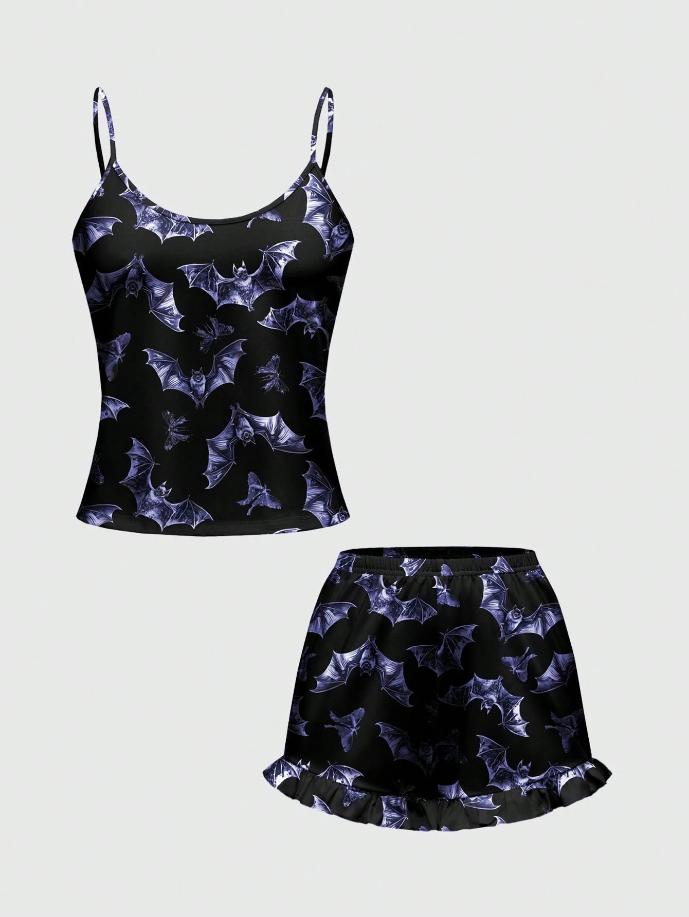 Goth Conjunto de pijama de camiseta y pantalones cortos con estampado de murciélago gótico, ropa de estar en casa informal