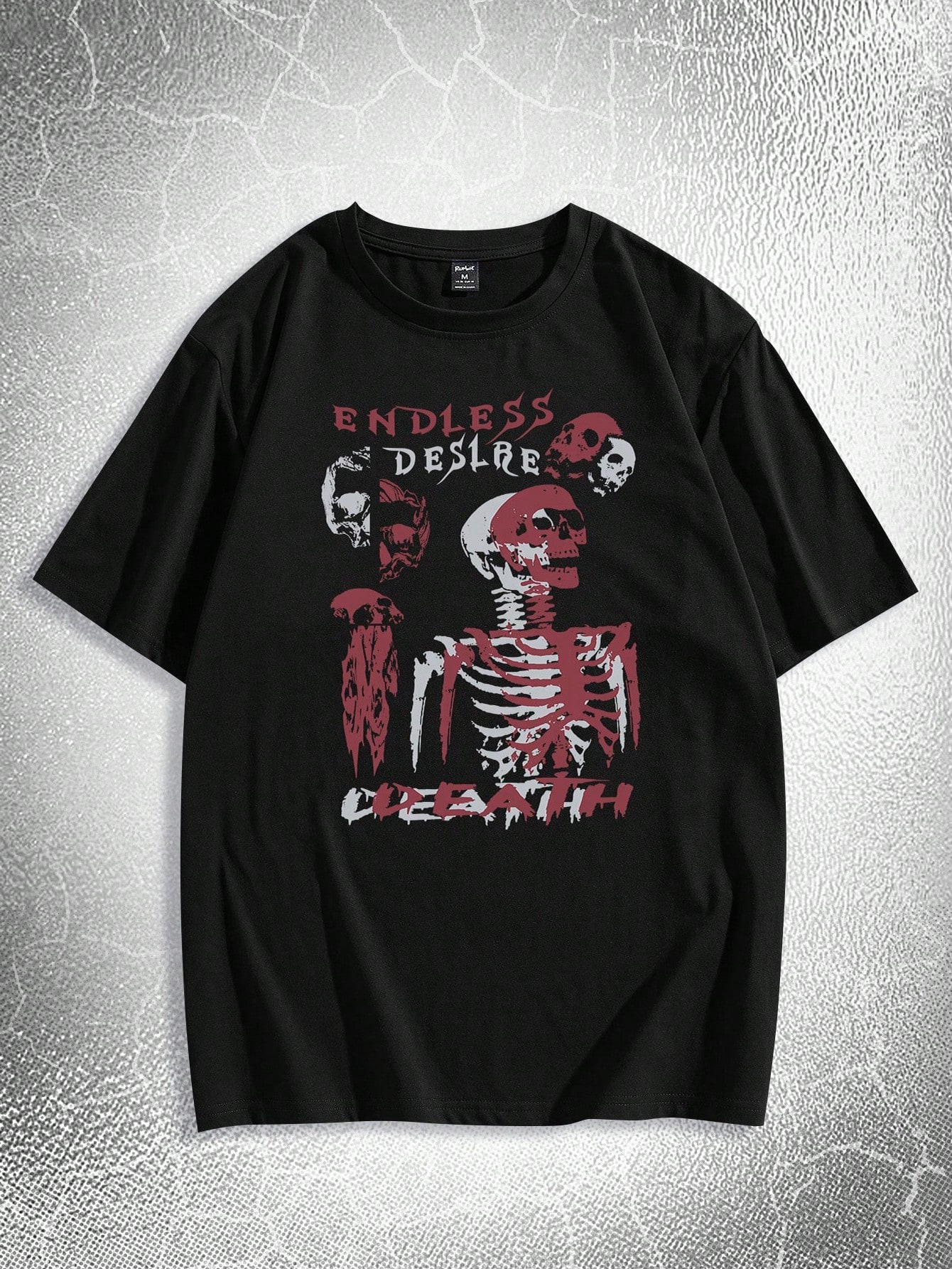 Goth Hombres Camiseta algodón con estampado esqueleto & de letra