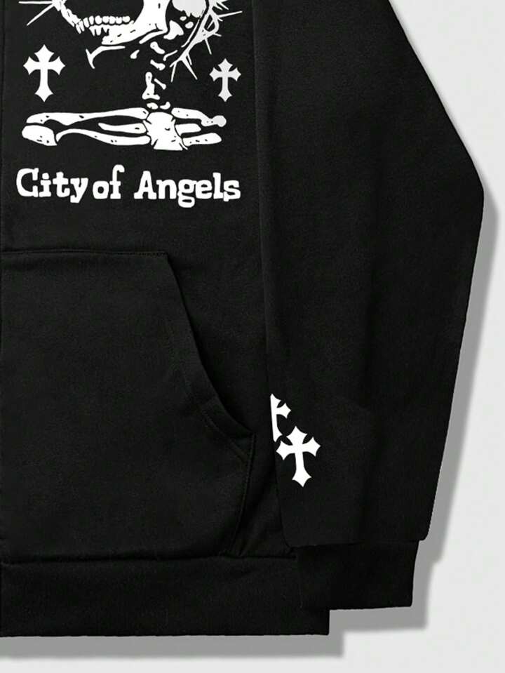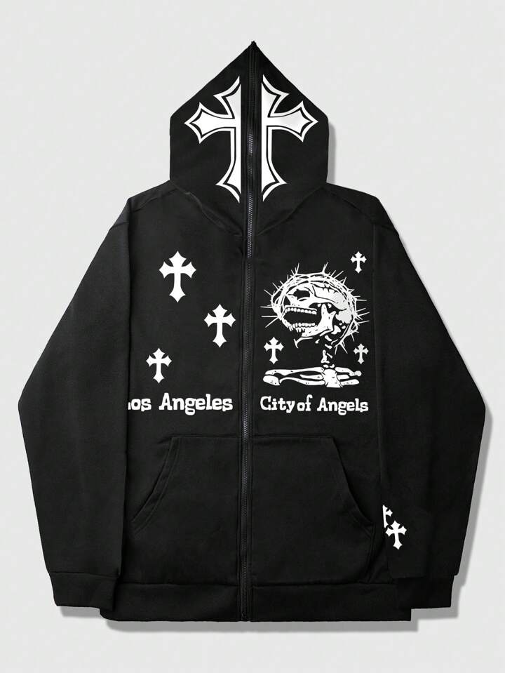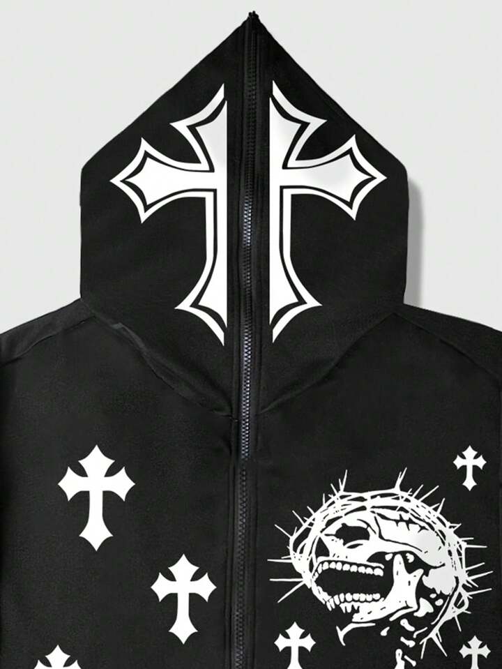 Goth Hombres Capucha con cremallera cruzado & con estampado de letra