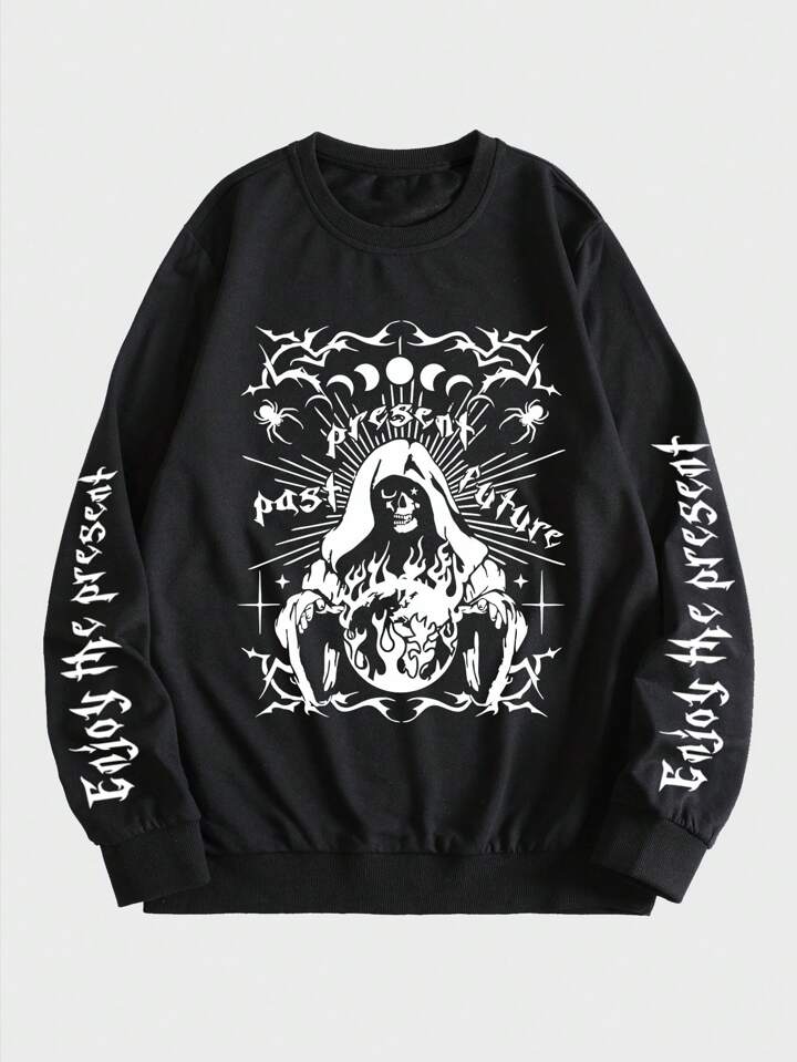 Goth Hombres Sudadera con estampado de letra y esqueleto