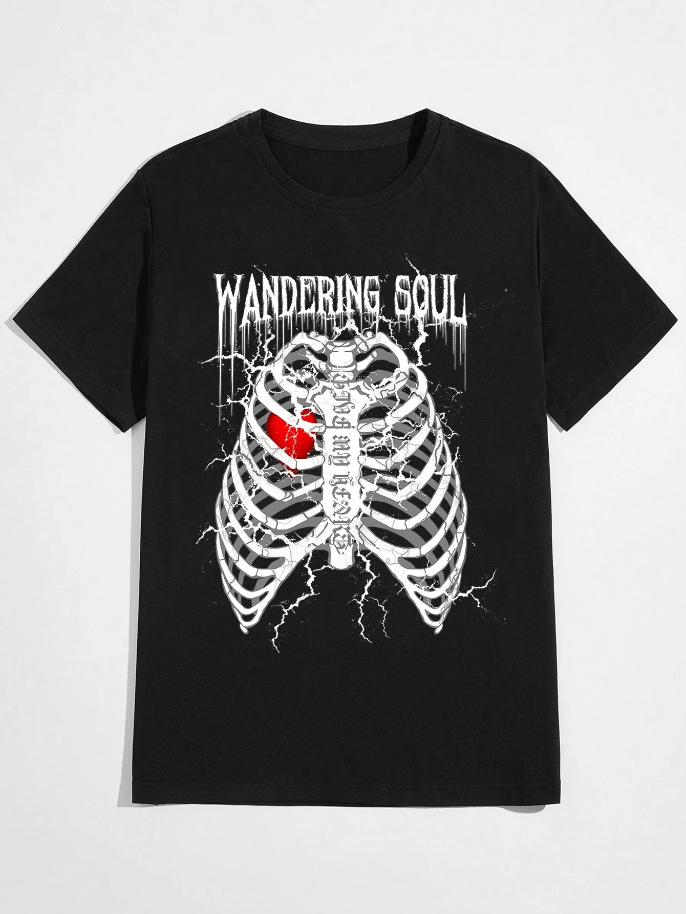 Goth Hombres Camiseta con letra esqueleto & con estampado de corazón