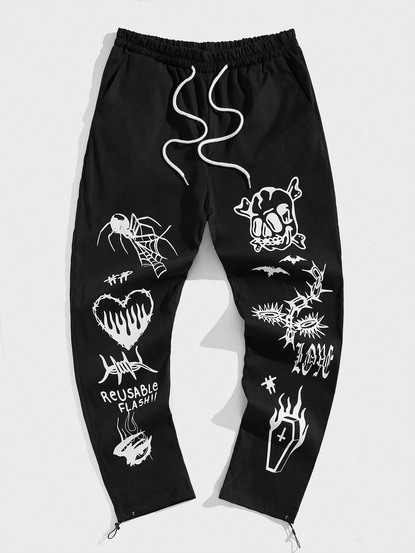 Goth Hombres Pantalones con estampado de letra & de cráneo de cintura con cordón