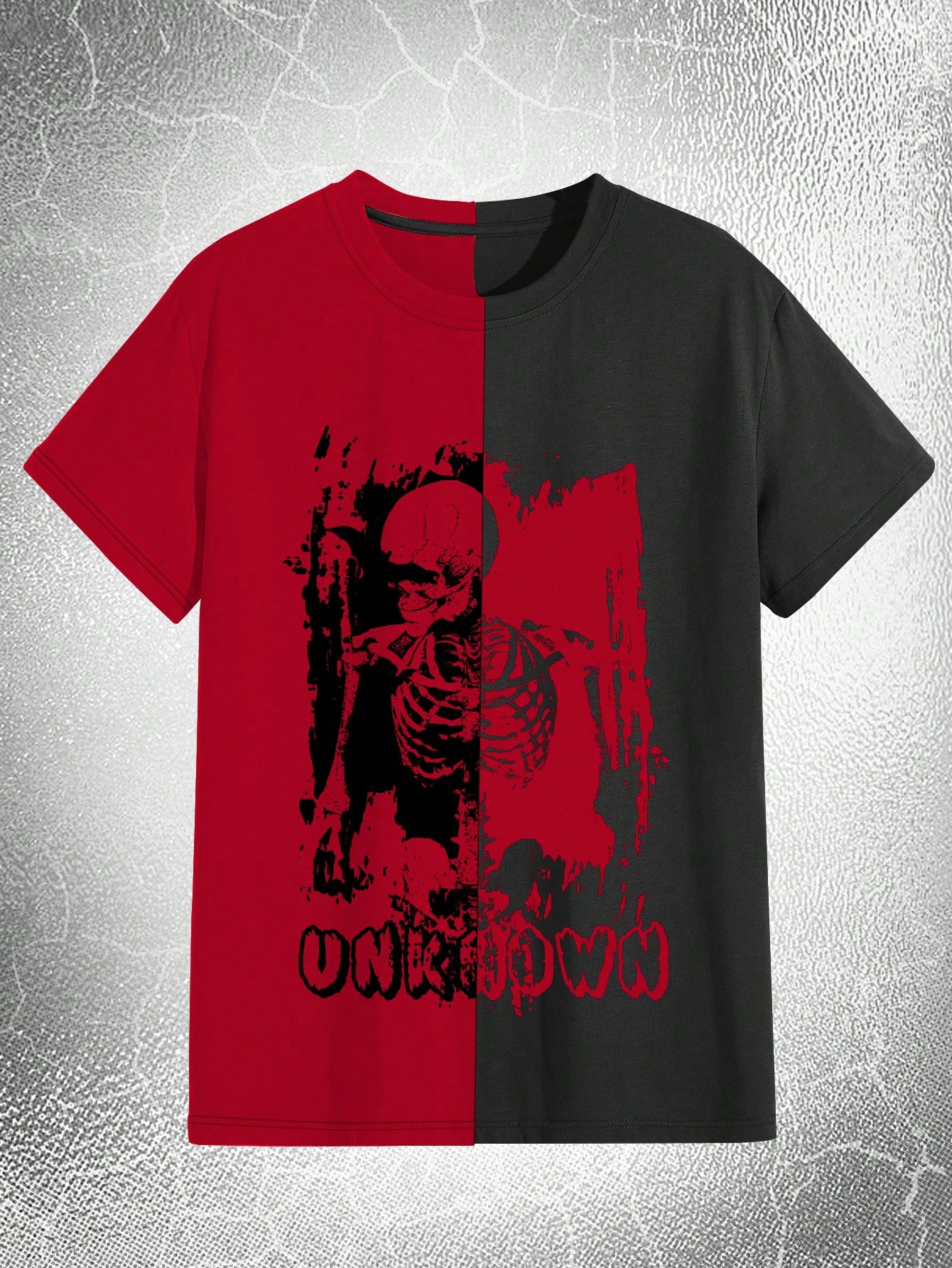 Goth Hombres Camiseta con estampado de esqueleto de dos tonos