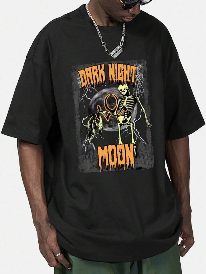 Goth Hombres Camiseta esqueleto & con estampado de slogan