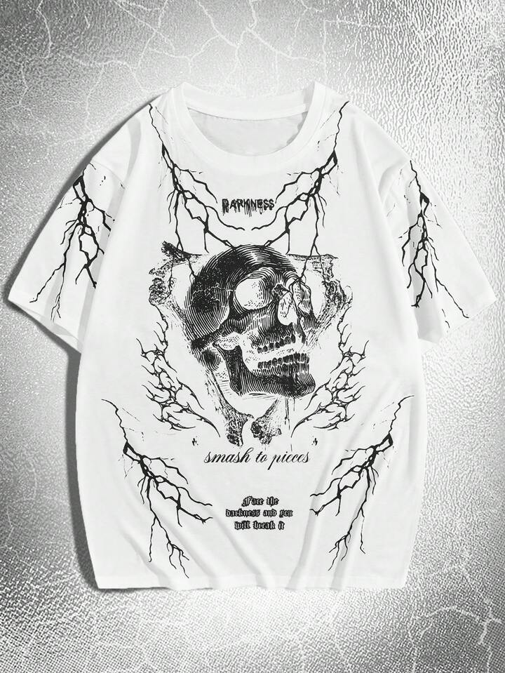 Goth Hombres Camiseta de cráneo & con estampado de rayo