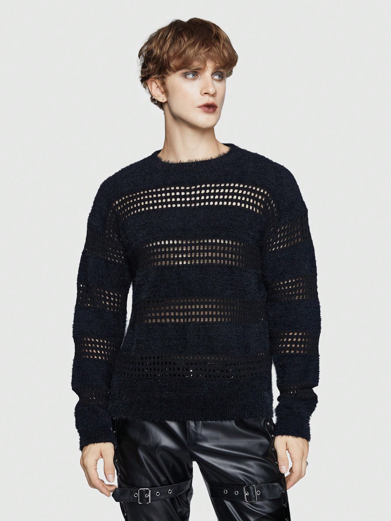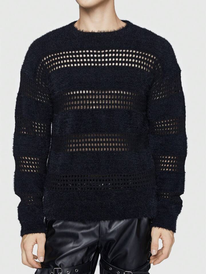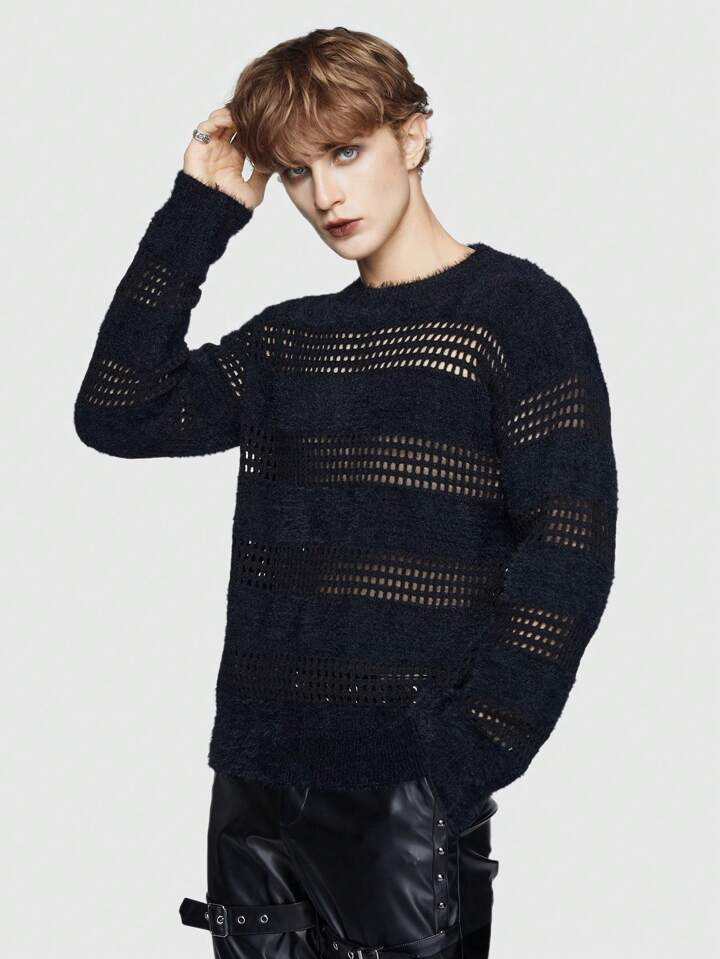 Goth Hombres Jersey unicolor de punto de malla de hombros caídos
