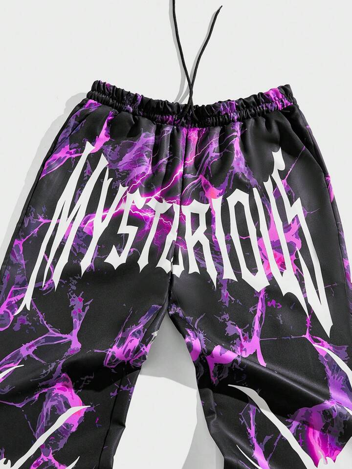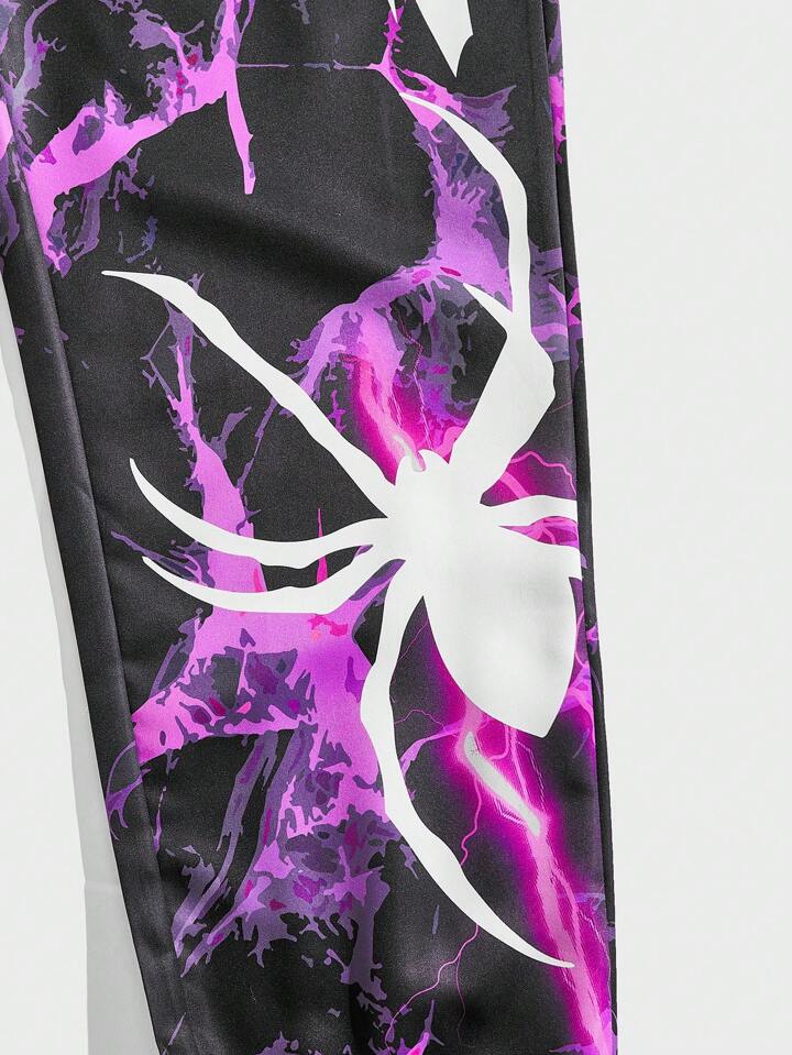 Goth Hombres Pantalones araña & con estampado de letra de cintura con cordón