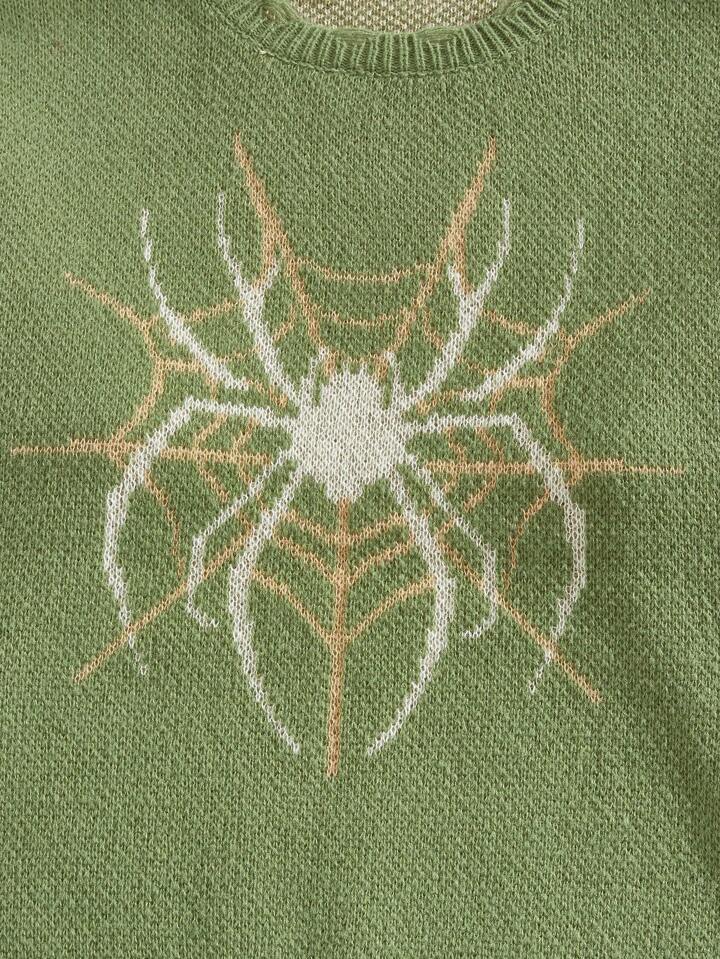 Goth Hombres Jersey con patrón de telaraña roto ribete