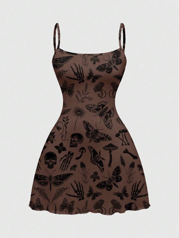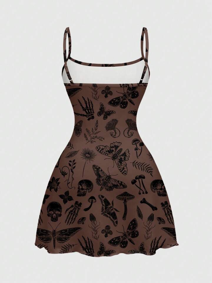 Goth Vestido mini para mujer con estampado de setas y hojas, en estilo gótico, hippie y bohemio, romántico