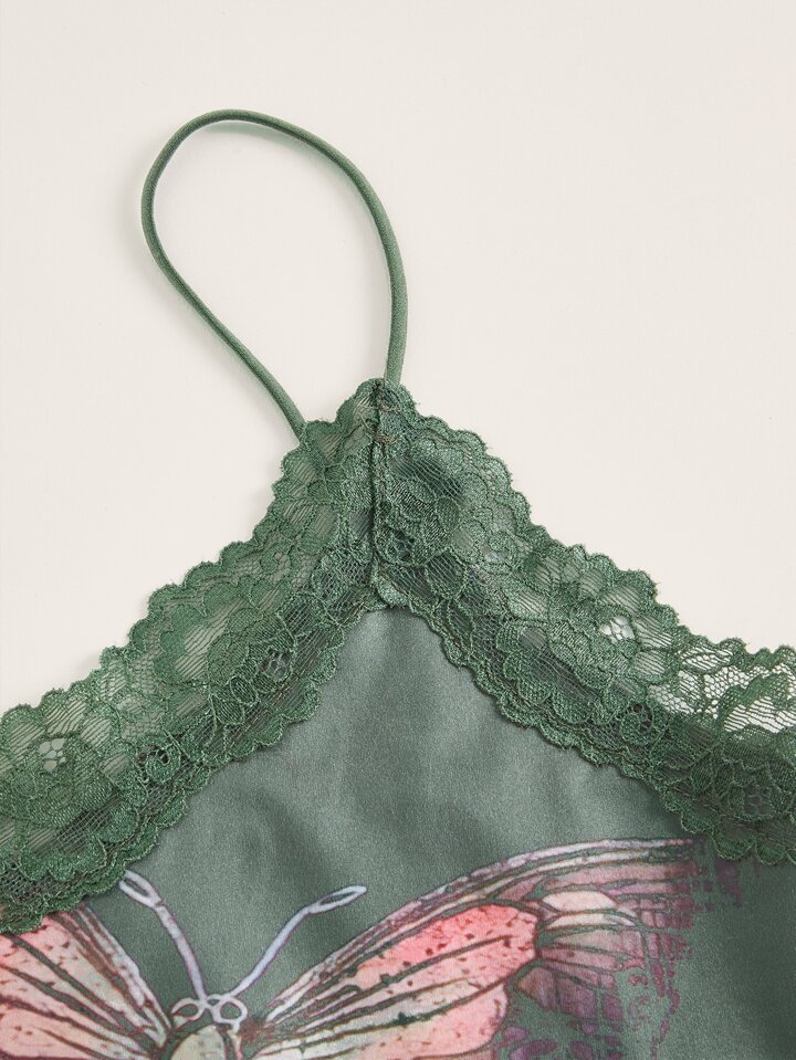 Goth Cami con letra con estampado de mariposa con encaje en contraste
