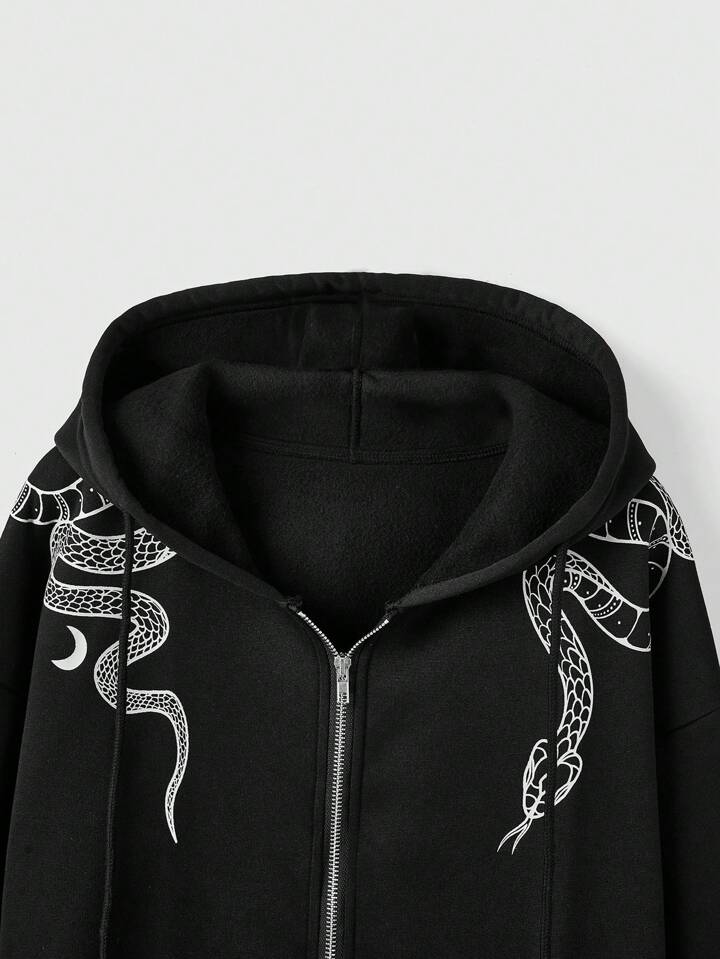 Goth Sudadera holgada con capucha, estampado de serpiente gótico, talla grande