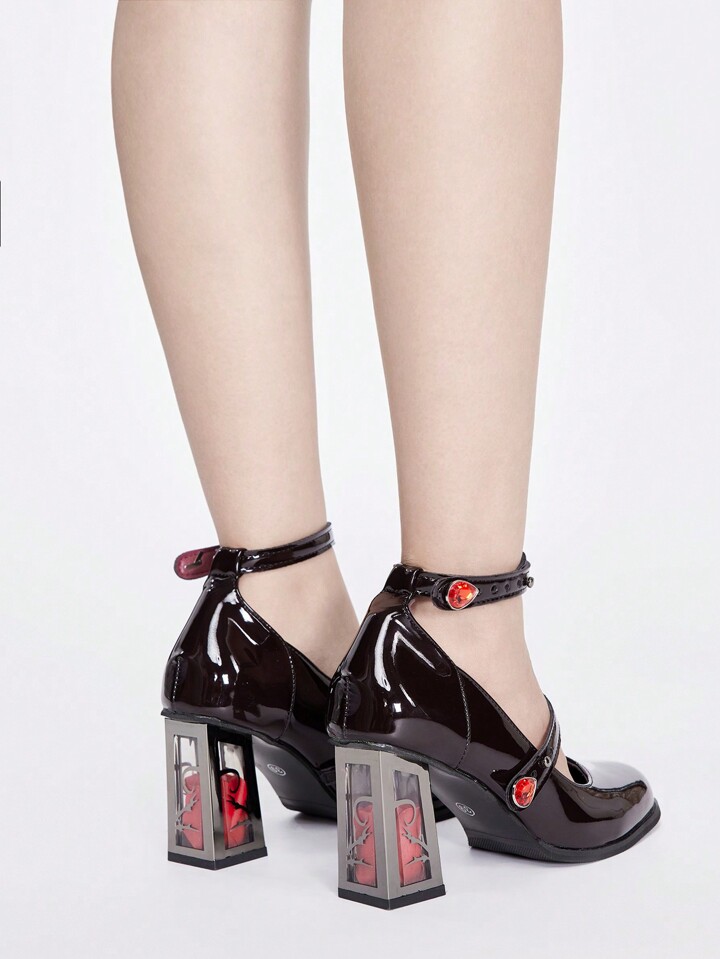 Goth Zapatos de tacón grueso retro Mary Jane para mujer con correa de hebilla, 1 pieza