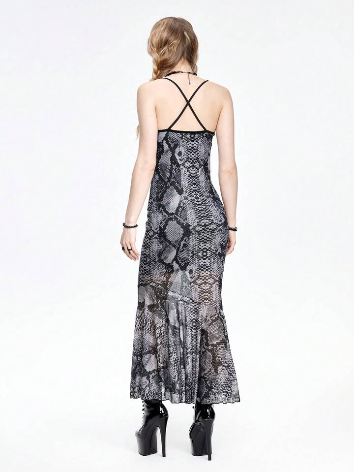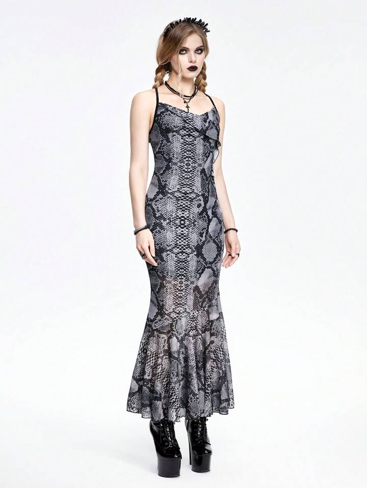 Goth Vestido de sirena de mujer madura ajustado al Body con cuello drapeado sexy, con impresión de malla para fiesta