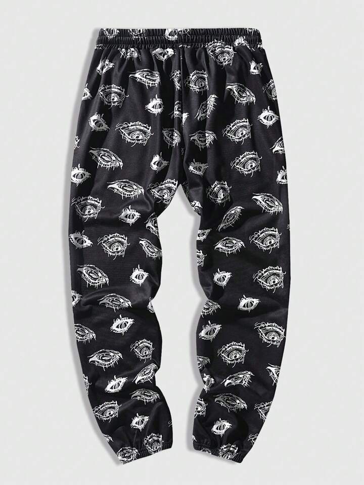 Goth Pantalones Deportivos Para Hombre Con Cintura Ajustable Y Estampado Completo De Ojos