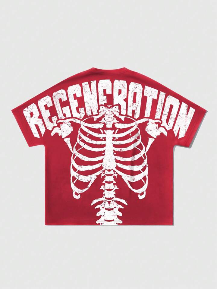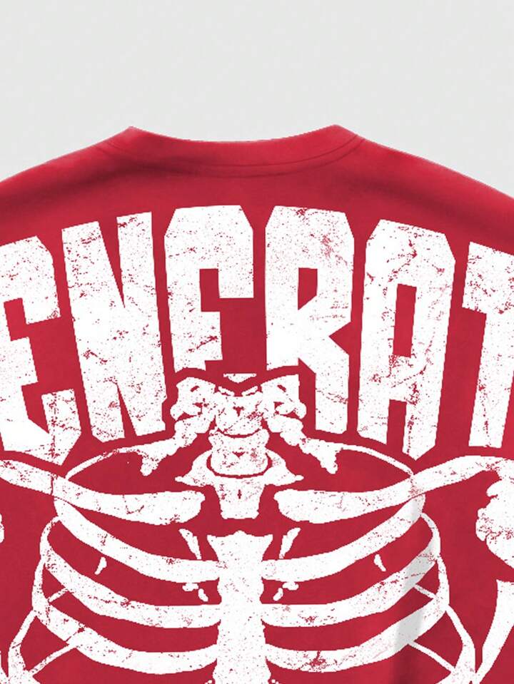 Goth Camiseta de manga corta casual para hombre con bloqueo de color, estampado de esqueleto y letra