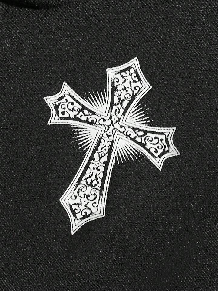 Goth Hombres Capucha Con Estampado Cruzado Y Cordón