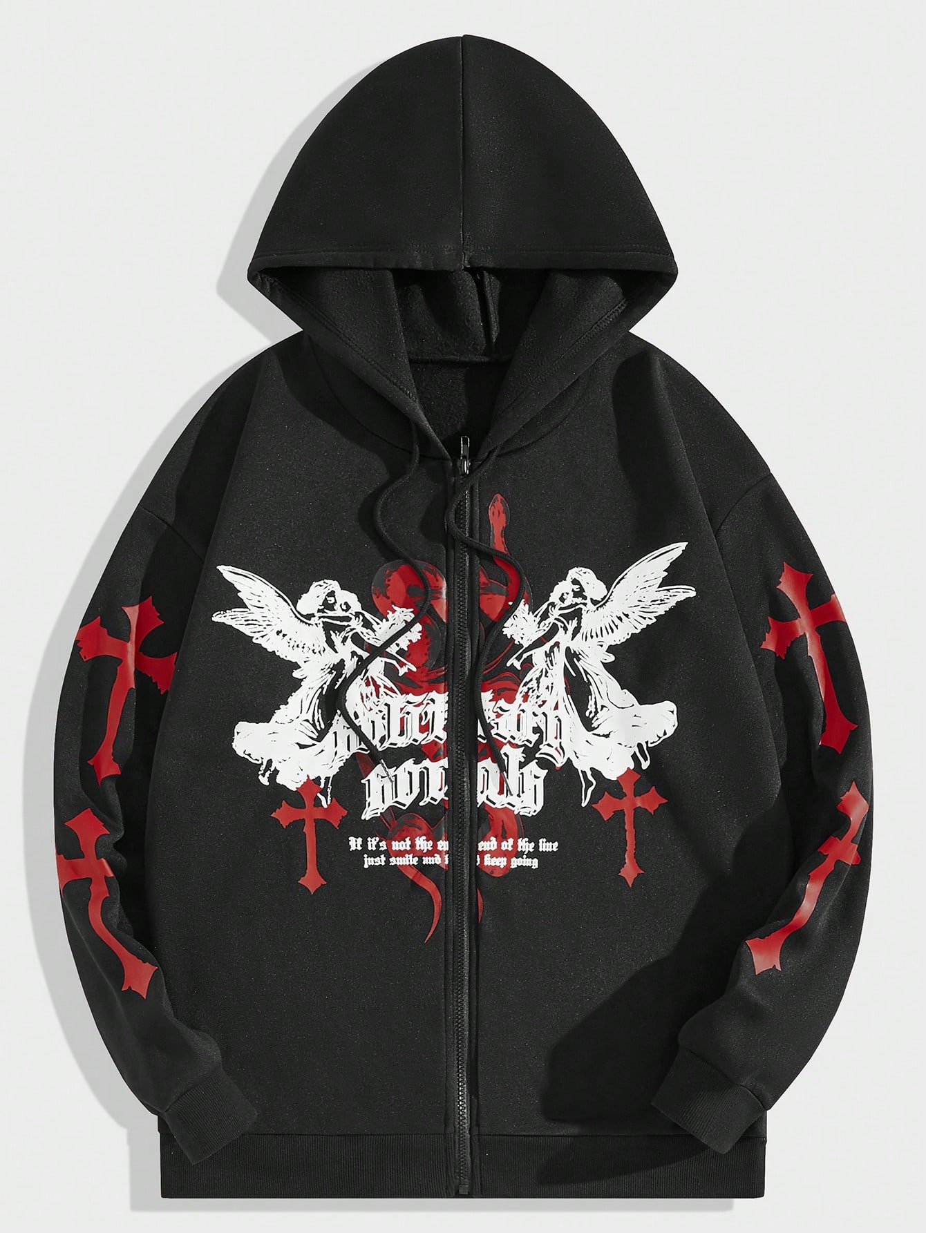 Goth Hombres Capucha con estampado de letra y figura con cordón