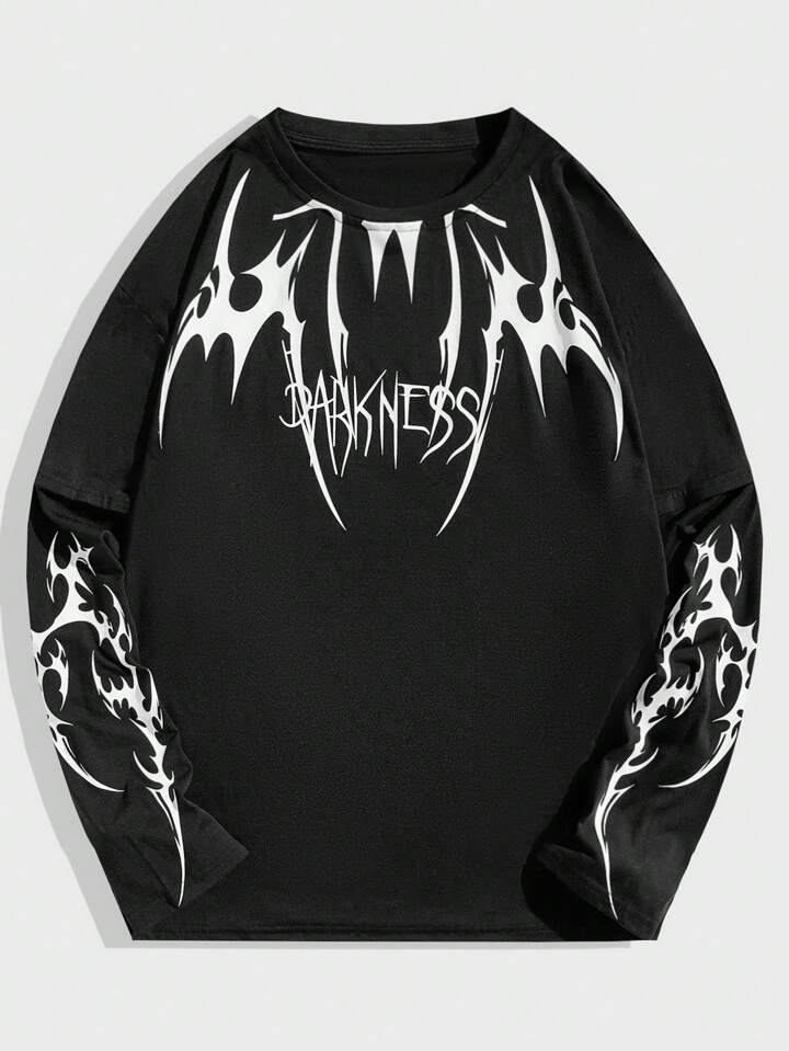 Goth Camiseta Gráfica Con Letras Para Hombre