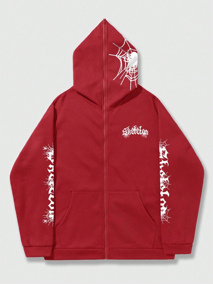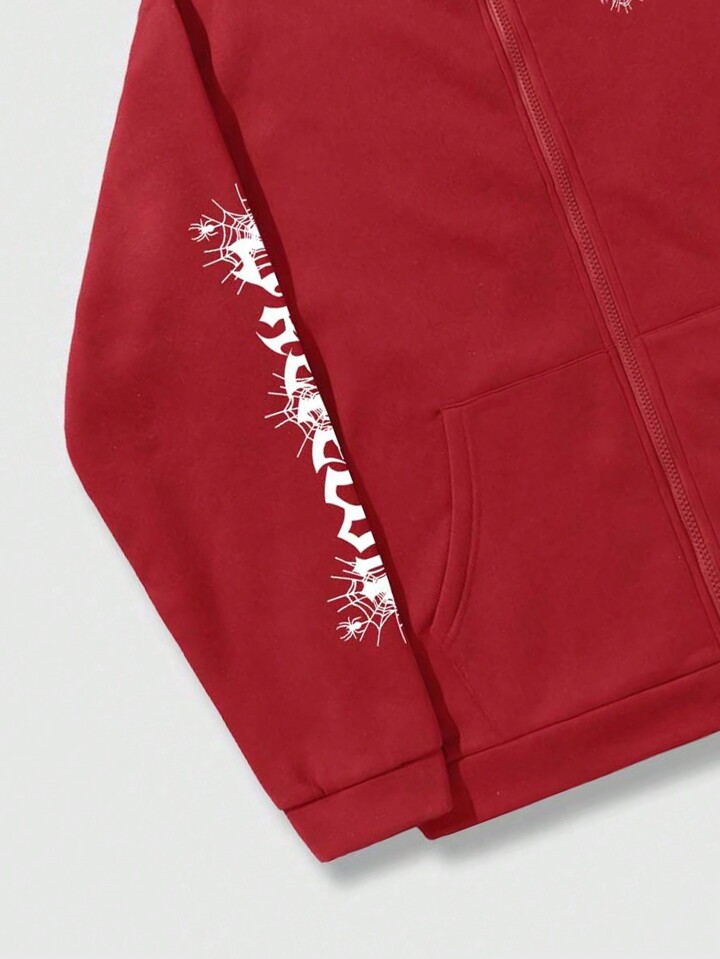 Goth Sudadera Con Capucha De Cremallera Con Gráficos Y Letras Para Hombre