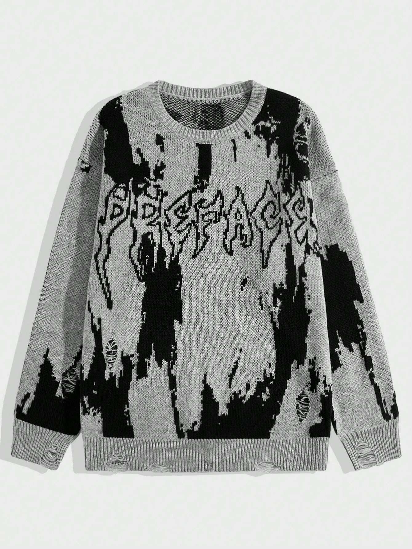 Goth Hombres Suéter Con Cuello Redondo Y Manga De Hombros Caídos Con Estampado De Letras