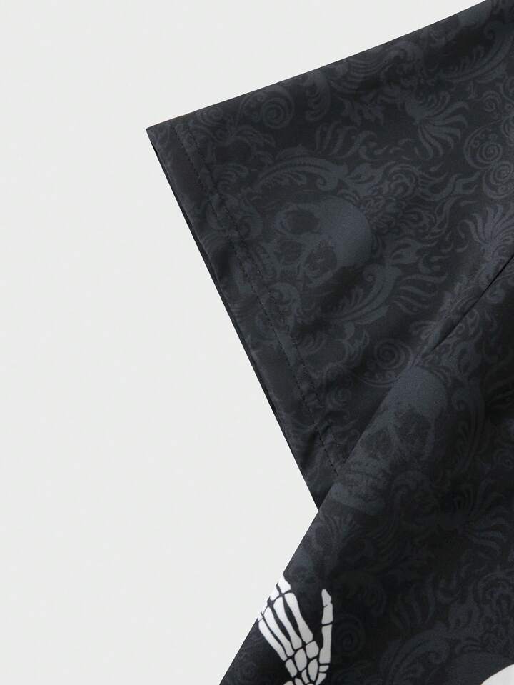 Goth Camisa de botones con estampado de esqueleto para hombres, para Halloween, escuela