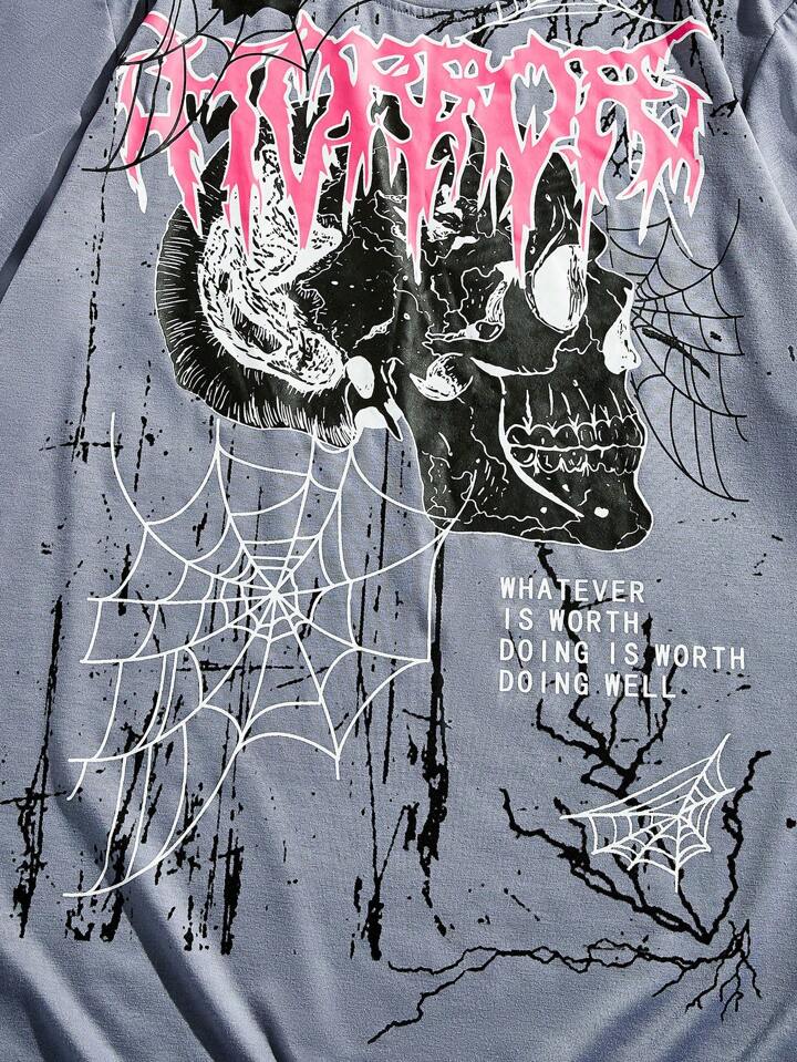 Goth Camiseta Gráfica Para Hombre Con Diseño De Calavera Y Letras