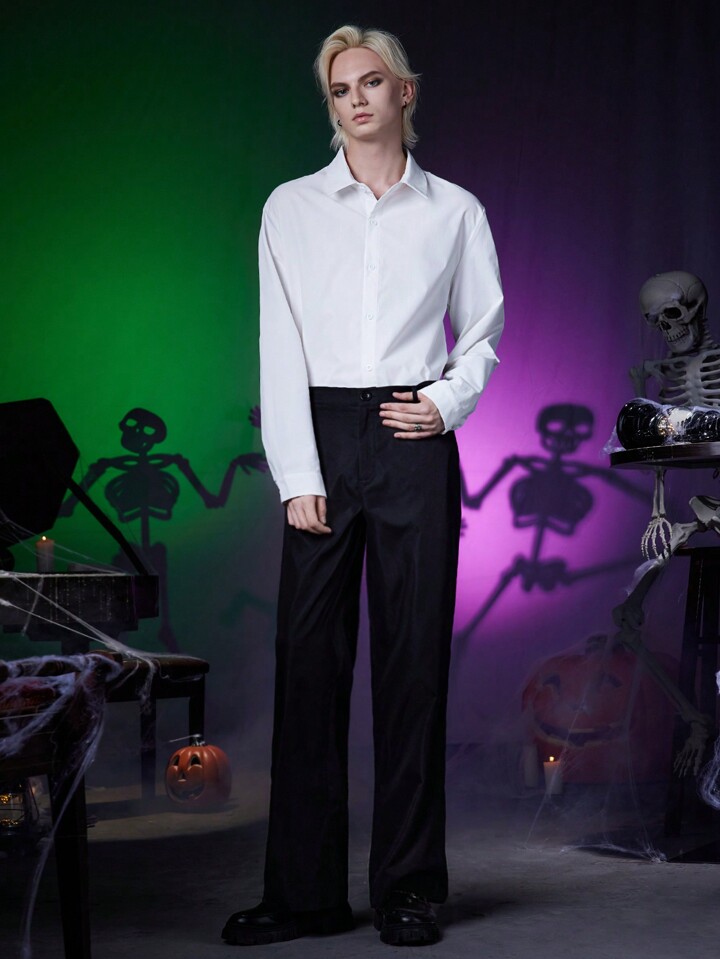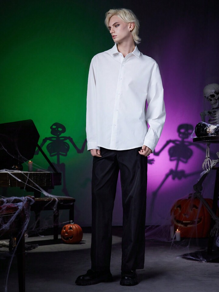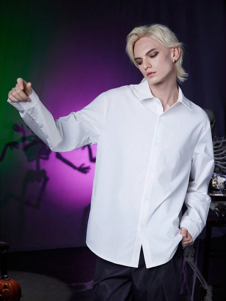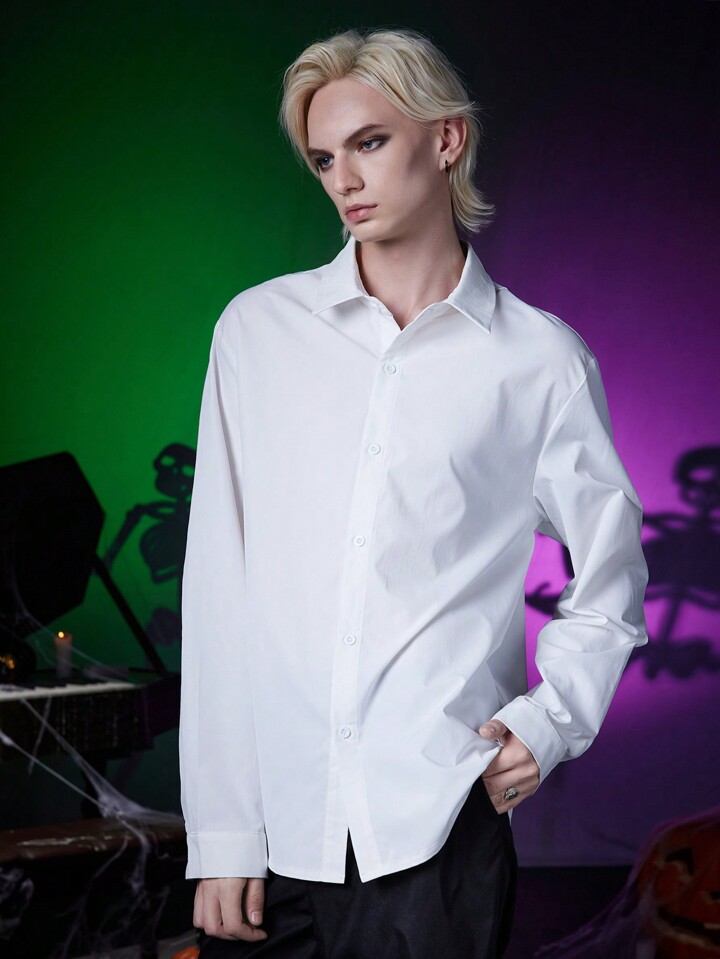Goth Camisa de botones de color sólido para hombre, para el otoño