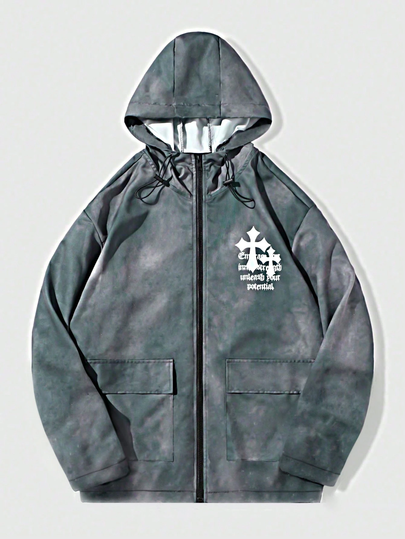 Goth Chaqueta con capucha con cordón y estampado de cruz y eslogan con efecto tie-dye para hombre