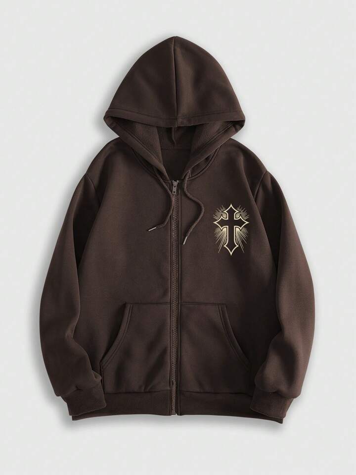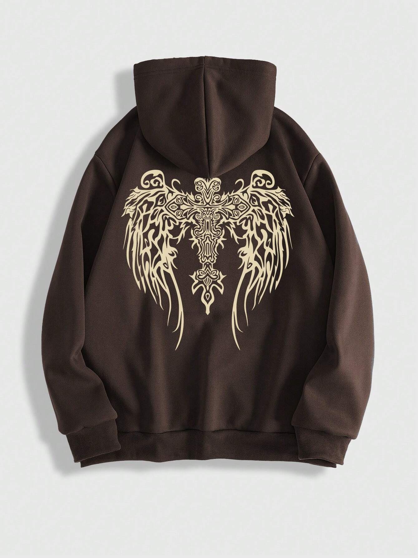 Goth Hombre Alas Impreso Bolsillo Canguro Cordías Sudadera Térmica Con Capucha
