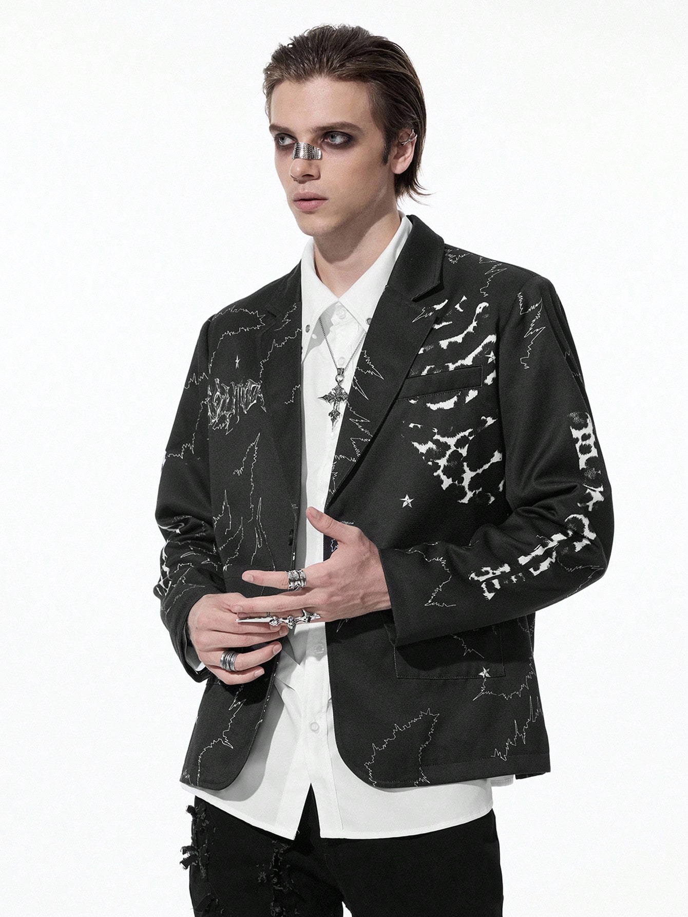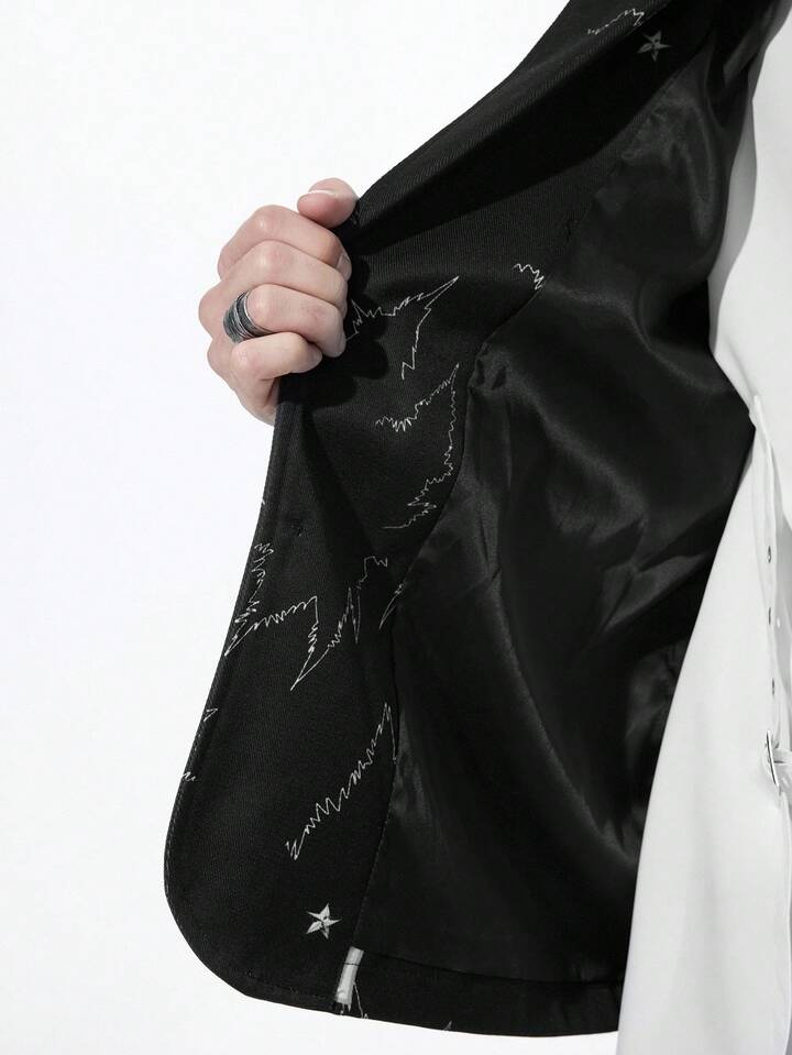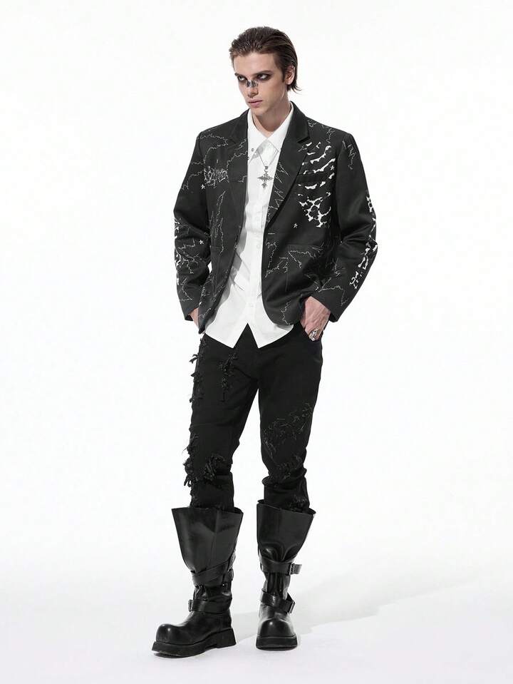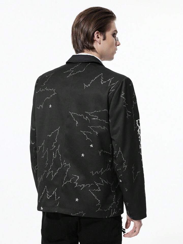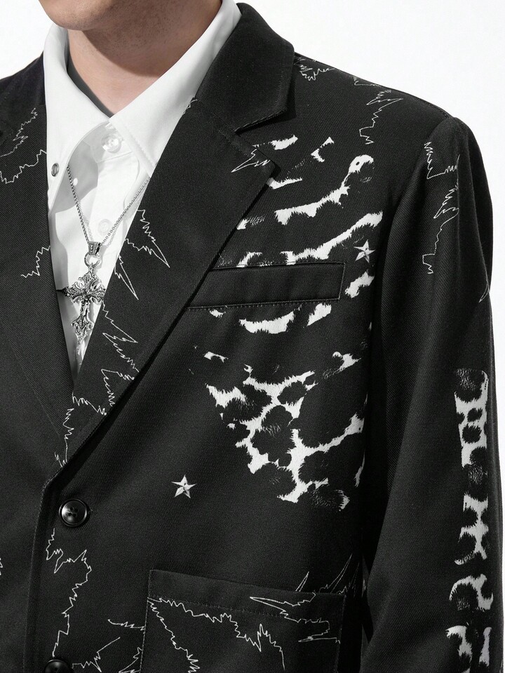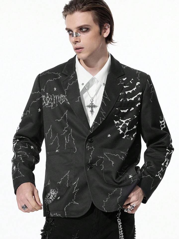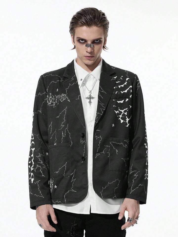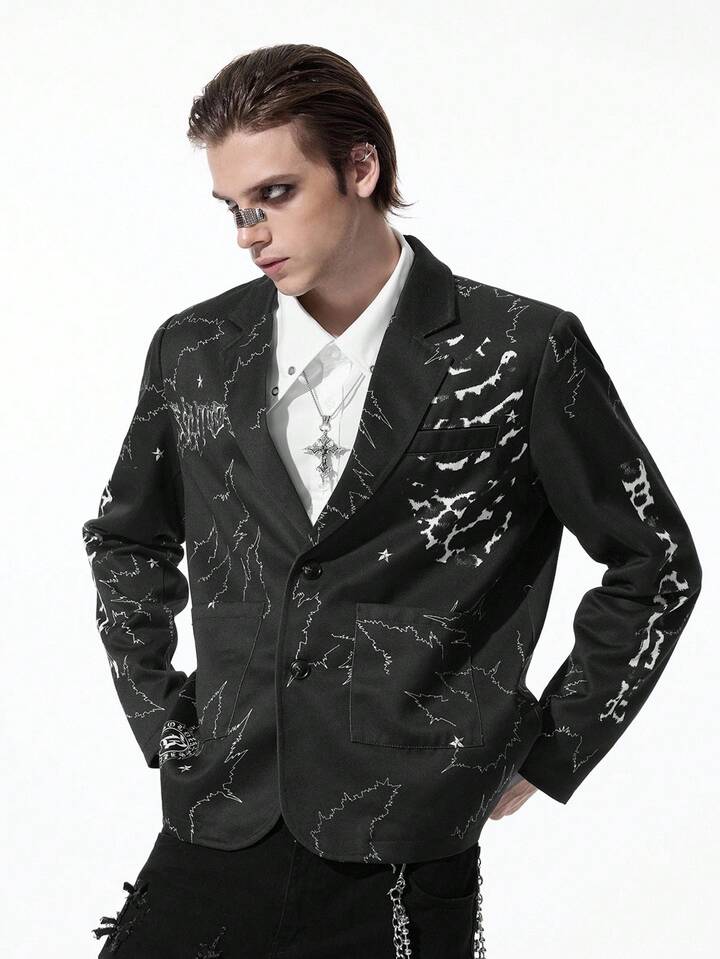 Goth Chaqueta casual de solapa con manga larga y estampado jaspeado para hombre en otoño