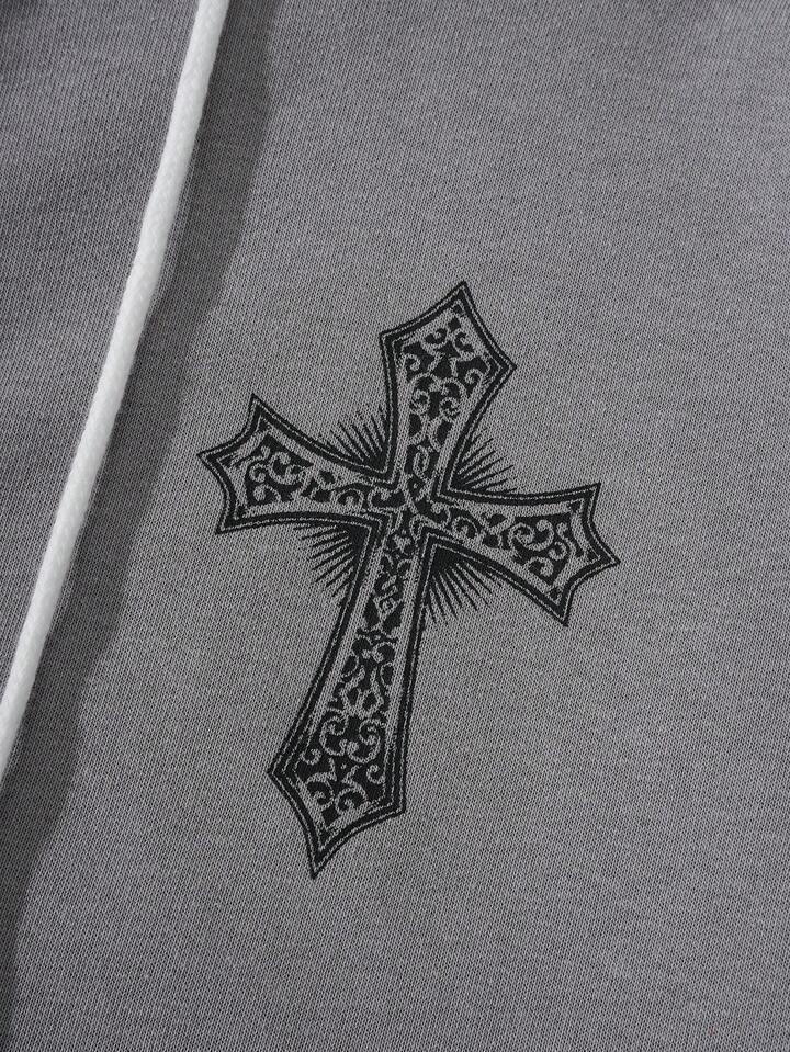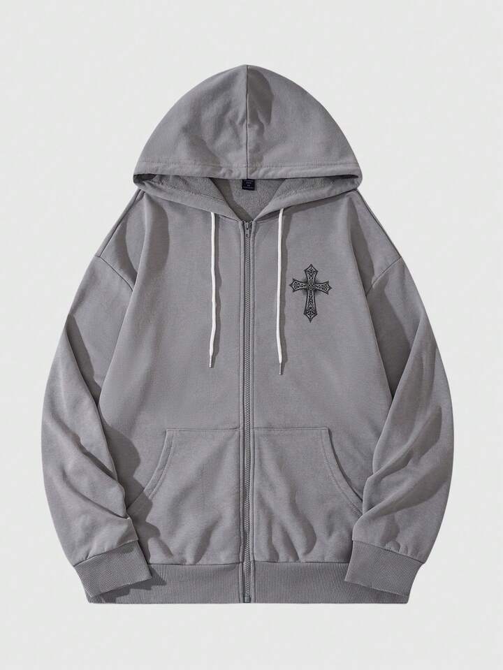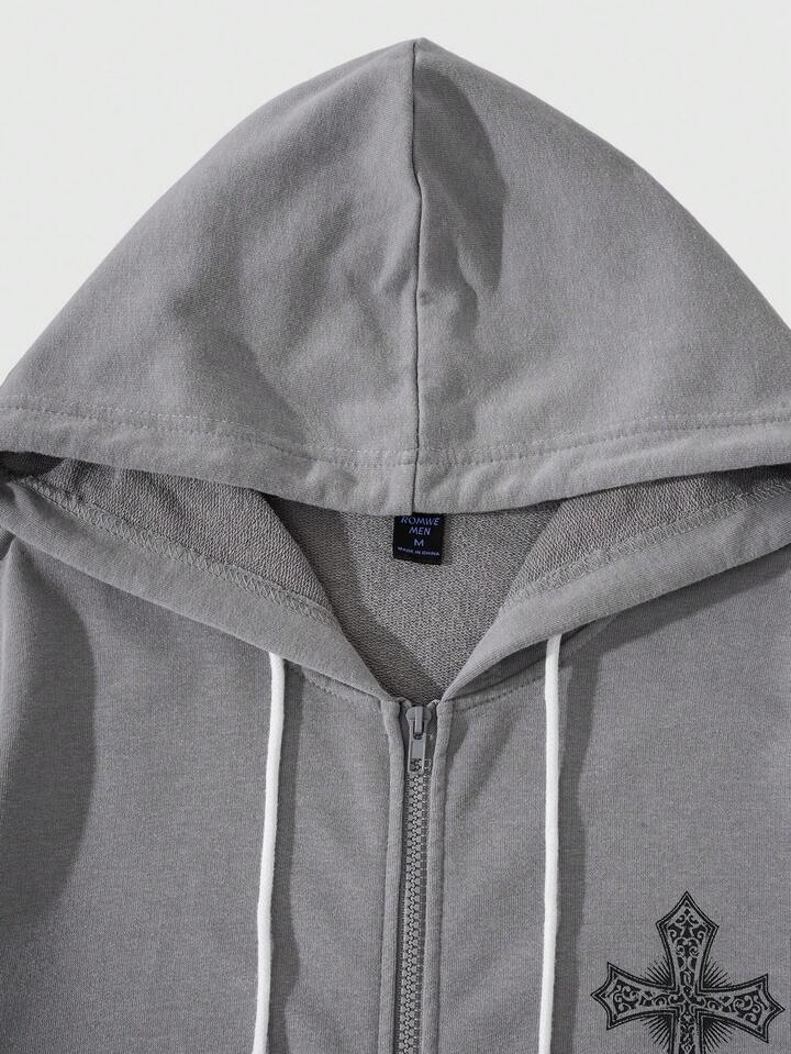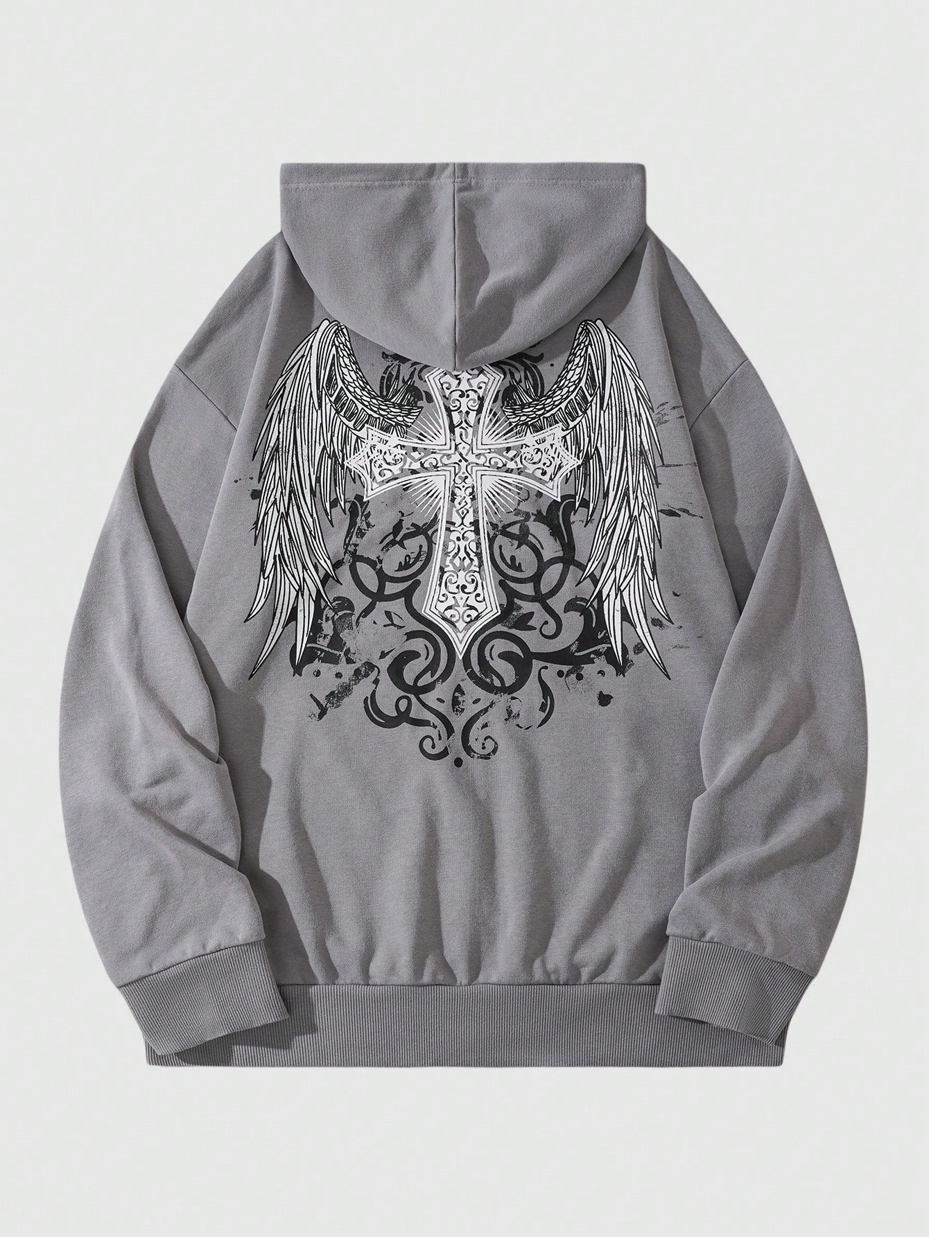 Goth Sudadera con capucha y cremallera casual con alas cruzadas y lavado ácido para hombres