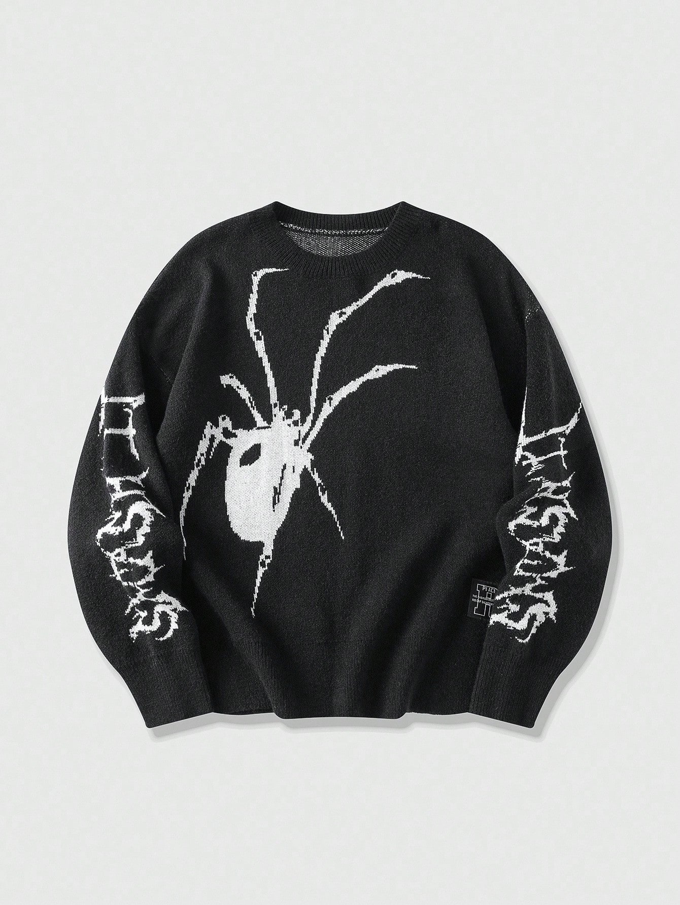Goth Jersey de cuello redondo de manga larga con estampado de letras y arañas, estilo informal, para otoño/invierno, estilo grunge