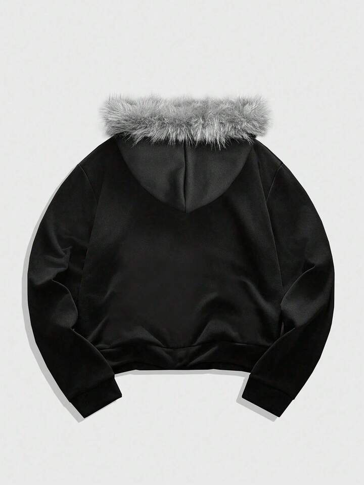 Goth Sudaderas con capucha de ajuste holgado y casual con cuello de piel para hombres, otoño/invierno