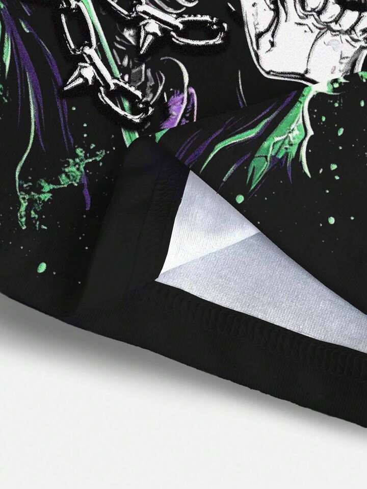 Goth Camiseta de manga corta de corte holgado con gráfico de calavera oscura, de estilo casual de calle para hombre en verano