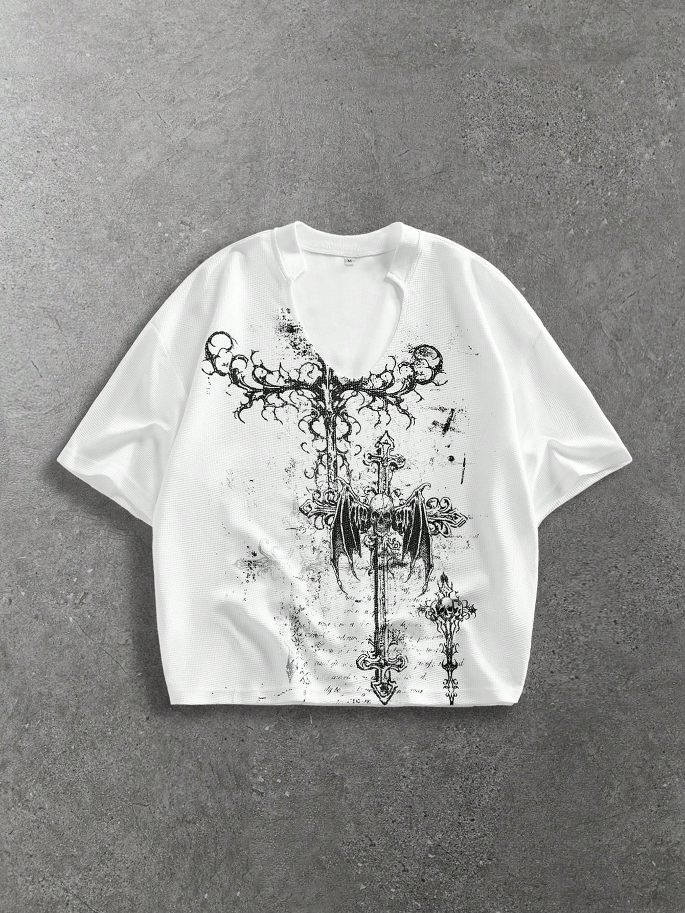 Goth Camiseta blanca de manga corta con cuello en V y estampado de cruz para hombres