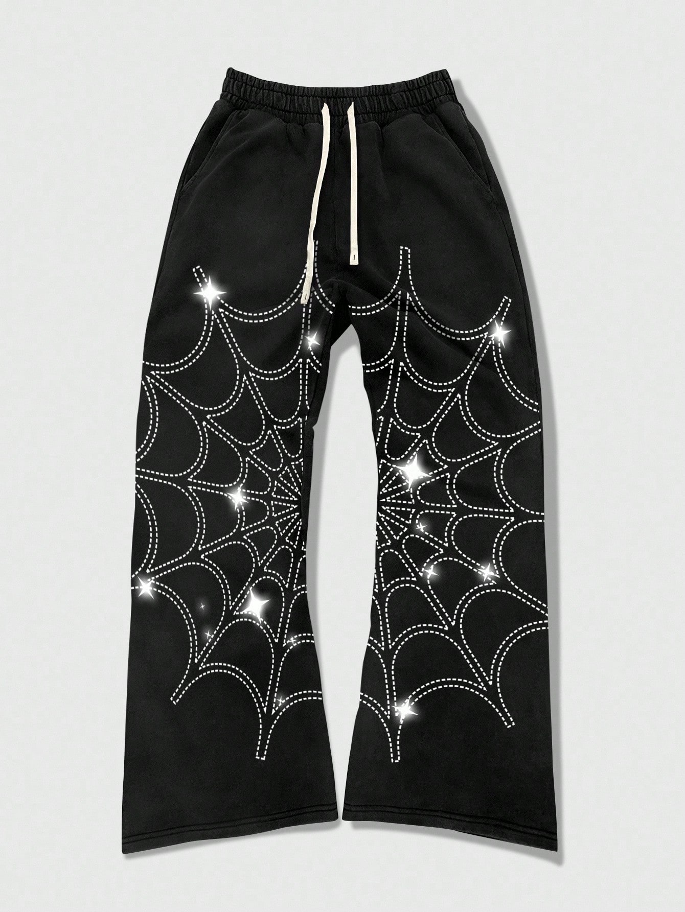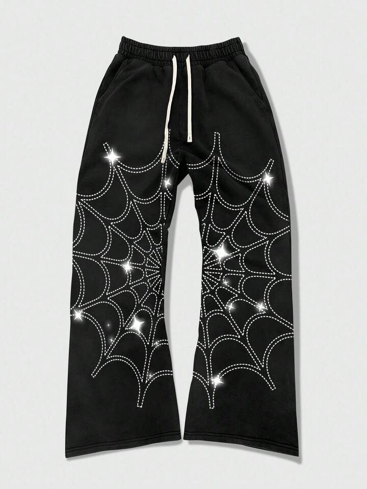 Goth Pantalones de chándal casuales versátiles con cintura elástica y cordón para hombres