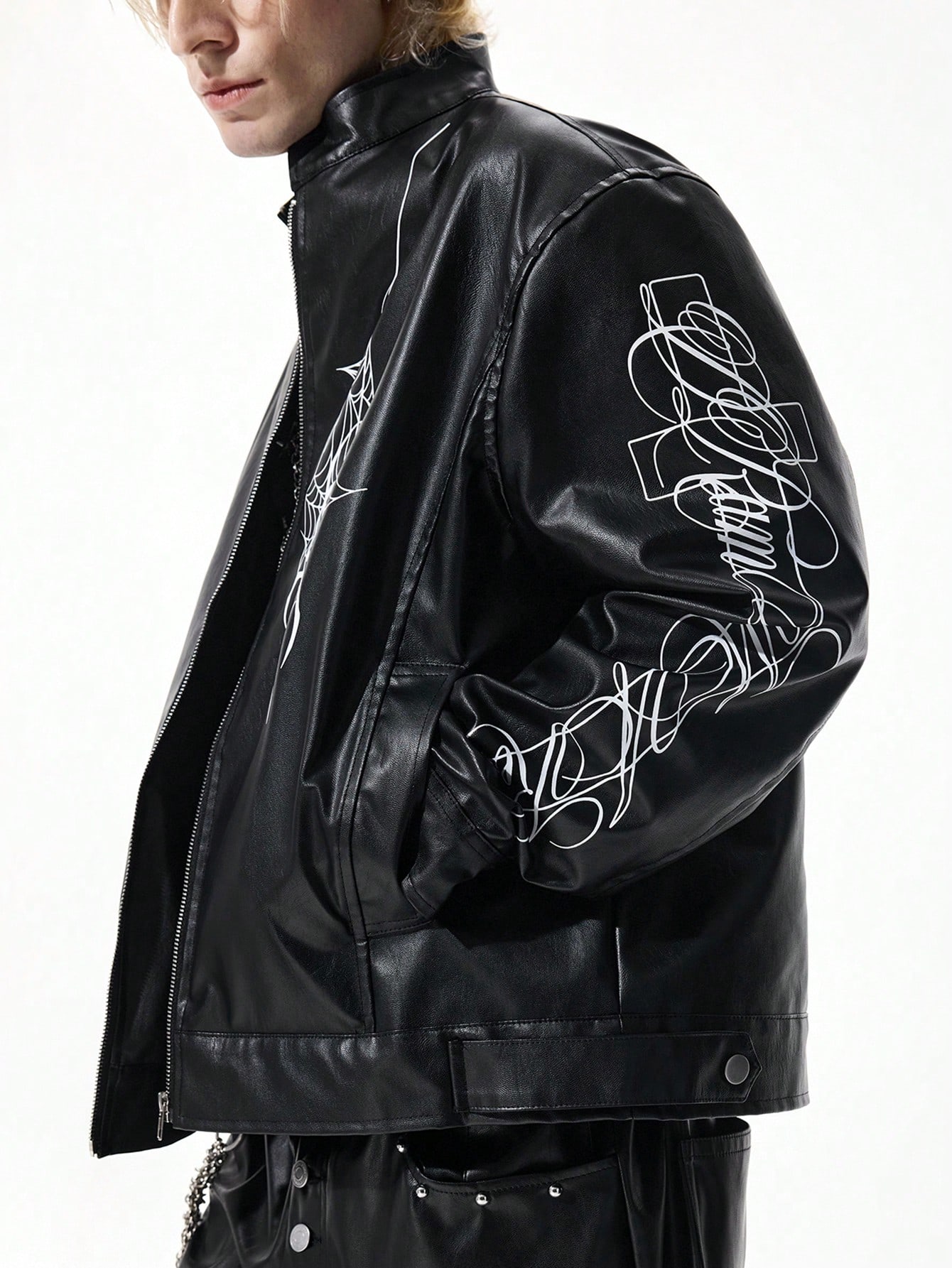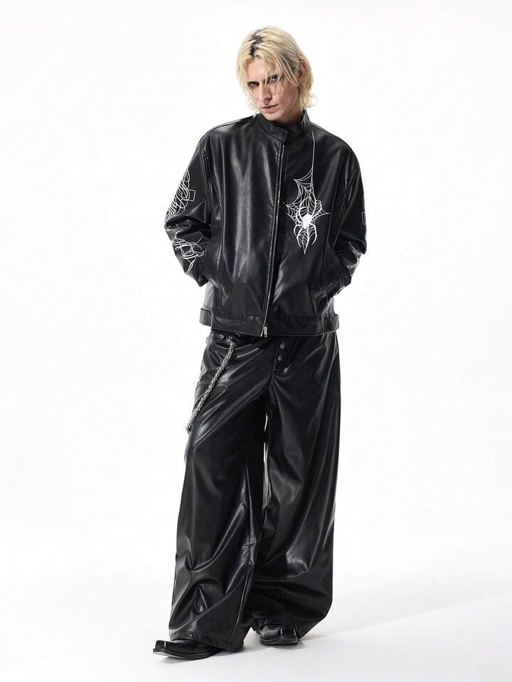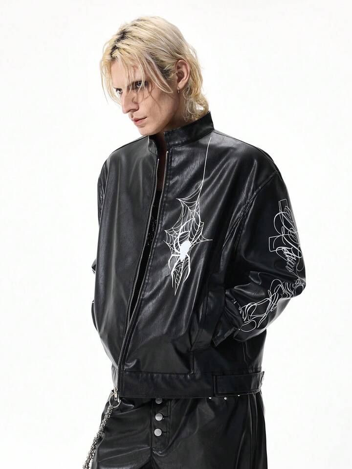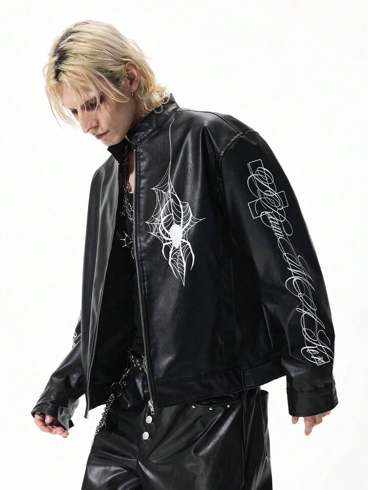 Goth Chaqueta de hombre con estampado de telaraña y letras