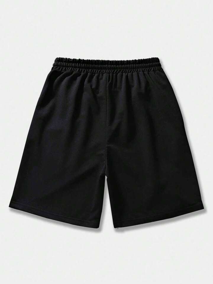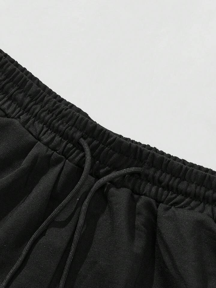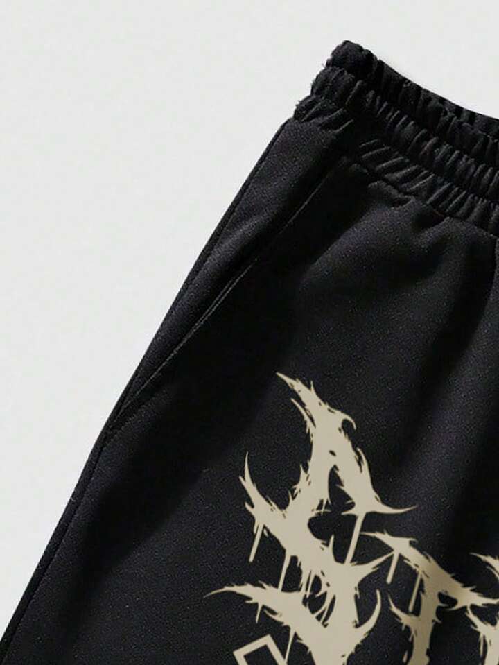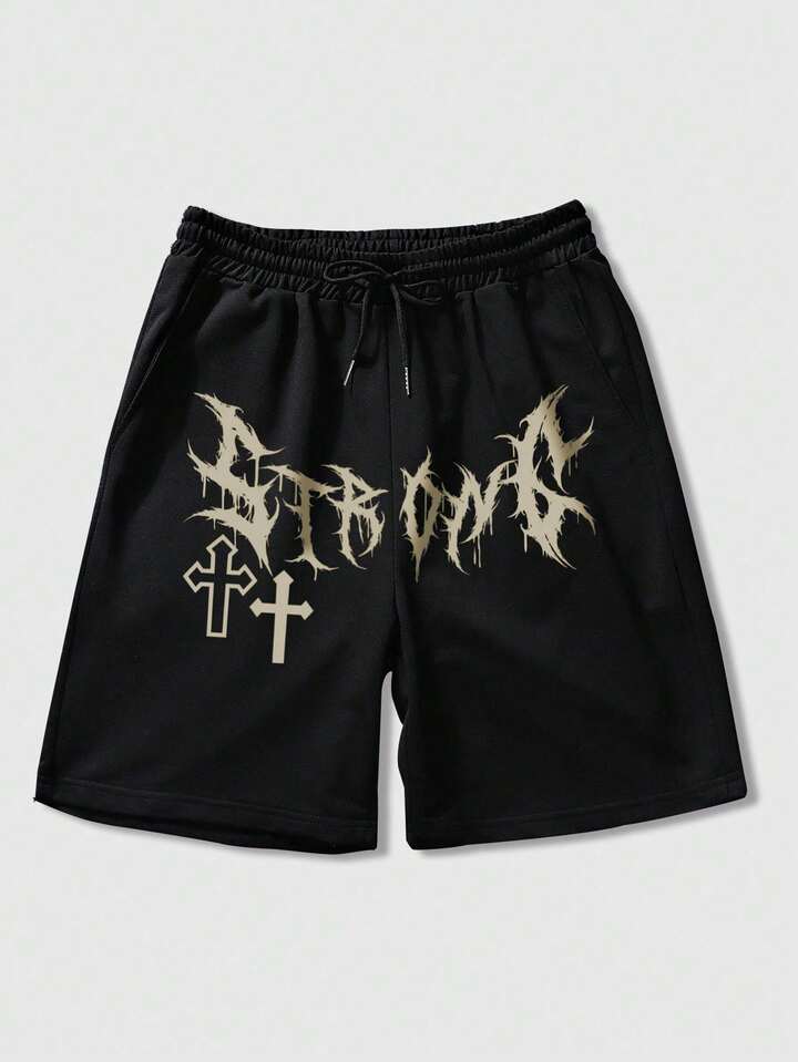 Goth Pantalones cortos casuales con cordón en la cintura y estampado de letras y cruces para hombres