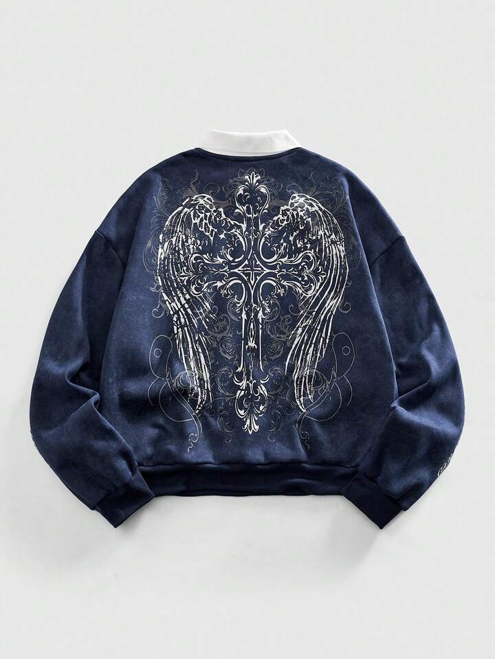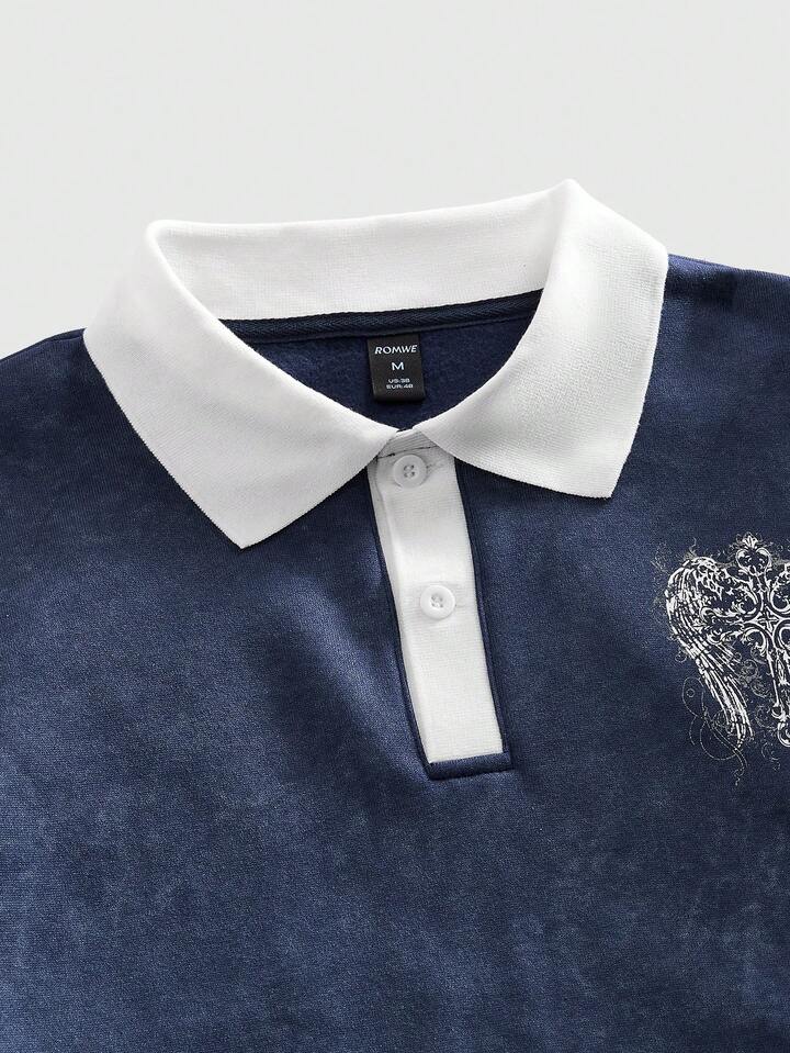 Goth Camisa polo de manga larga casual con estampado de letras para hombre