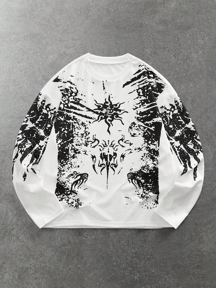 Goth Camiseta de manga larga con gráfico de alas oscuras para hombres